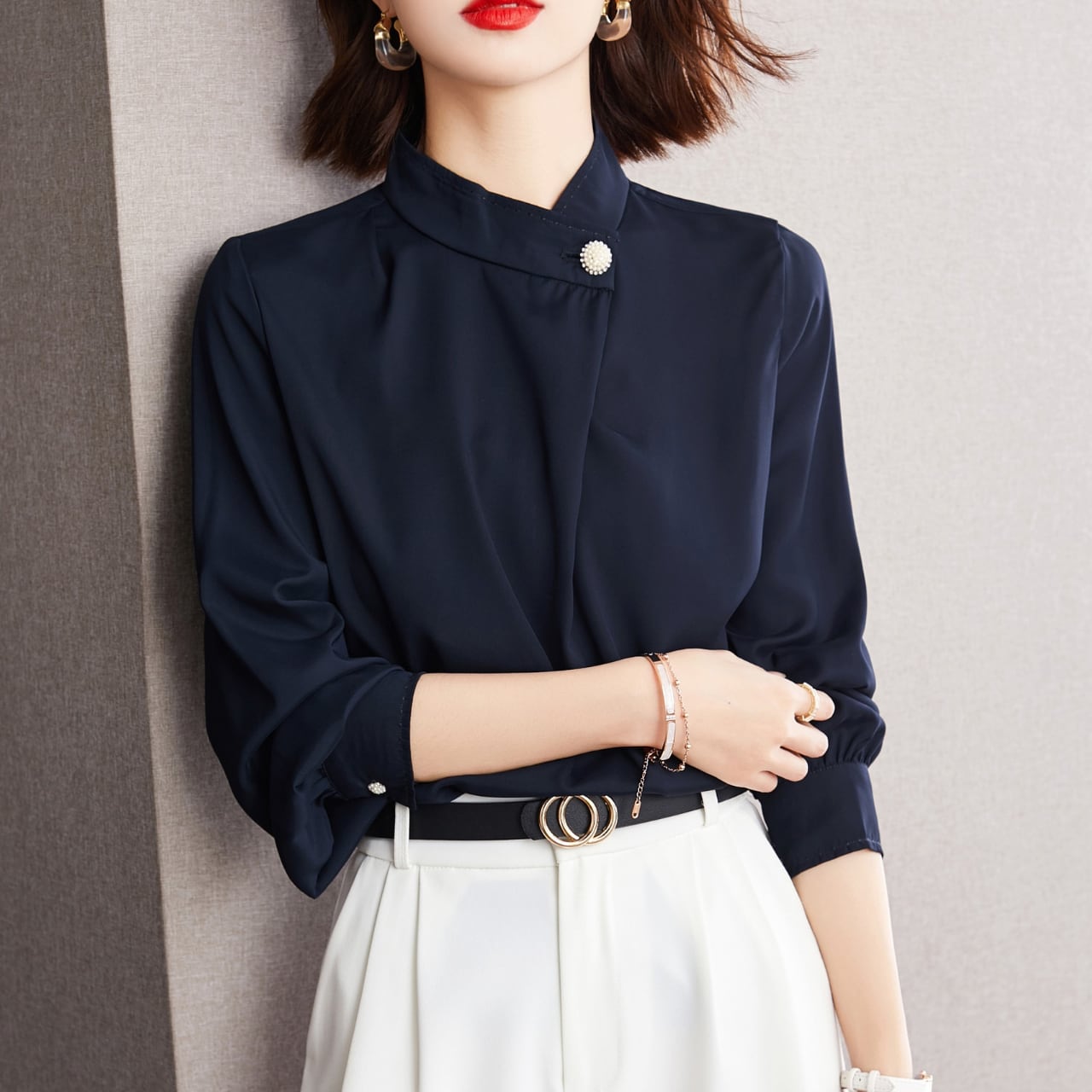 Chest button elegant chiffon blouse