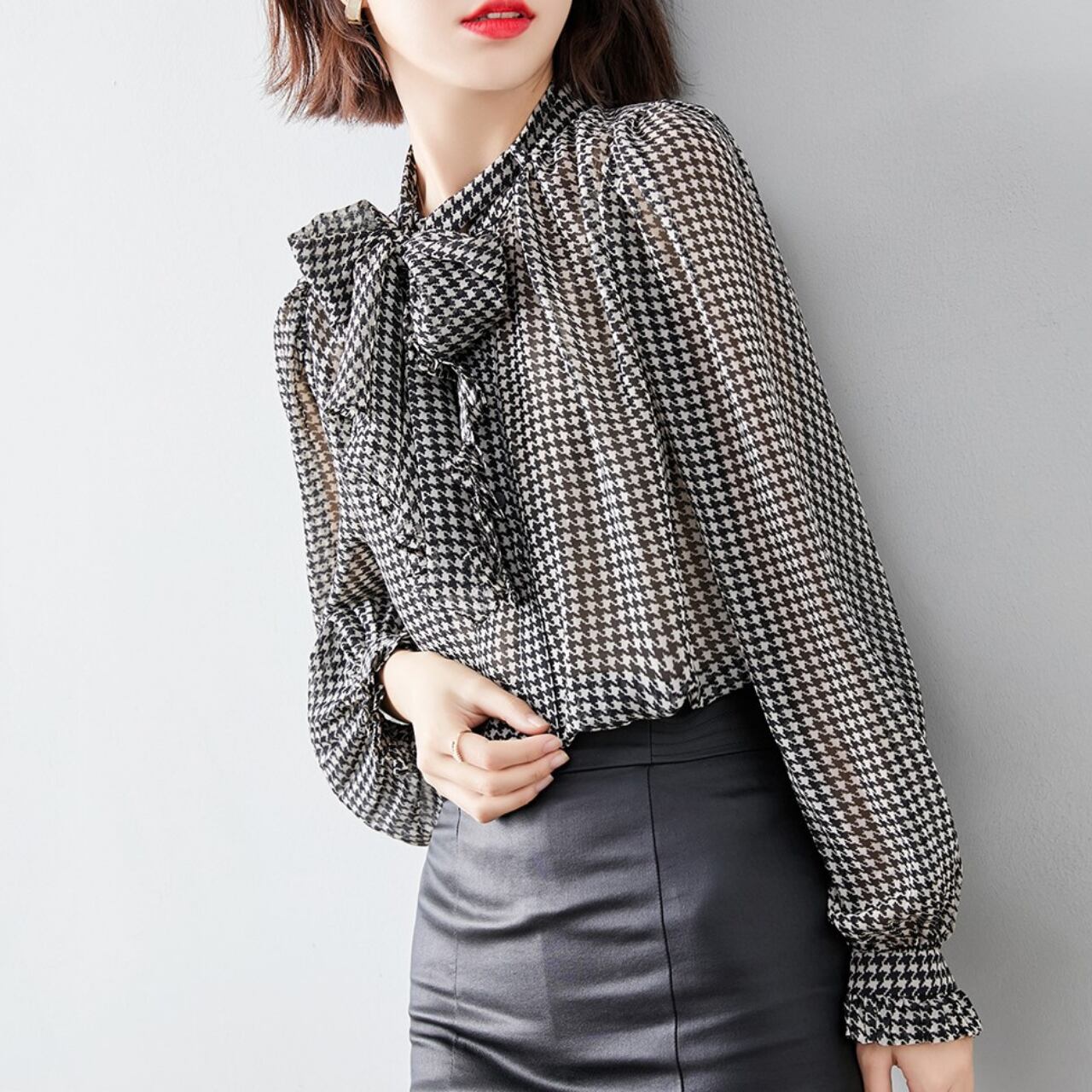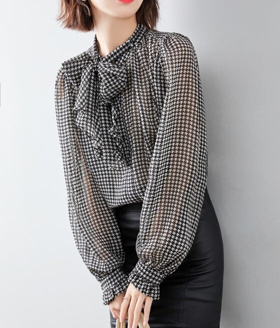 着用するだけでエレガントで大人可愛いムードが漂うチェックシフォンブラウス ♪