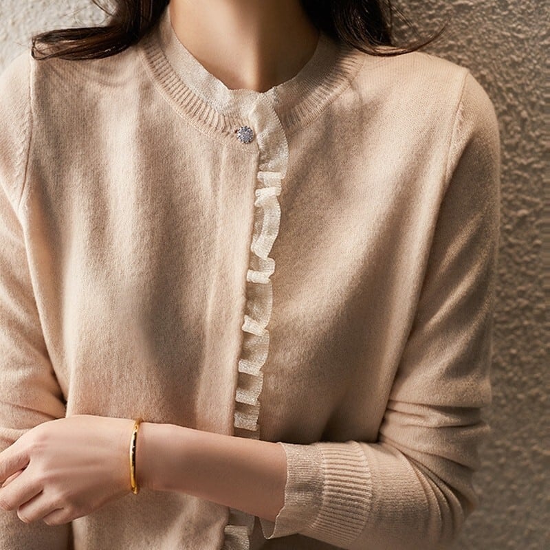 Mesh stitch elegant knit cardigan