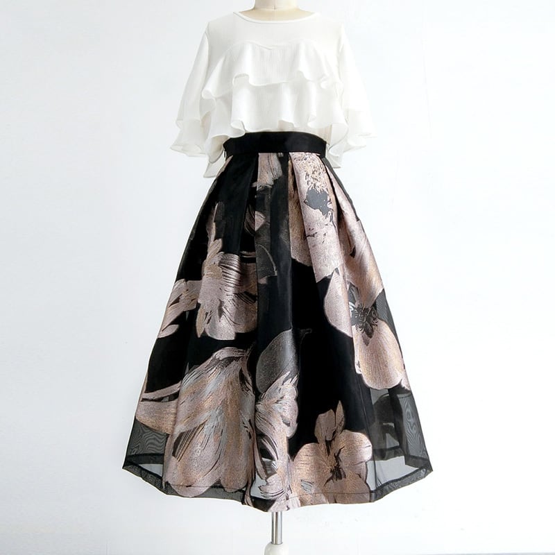 着用するだけで上品でエレガントな雰囲気が漂うエレガントフローラルスプリングスカート ♪