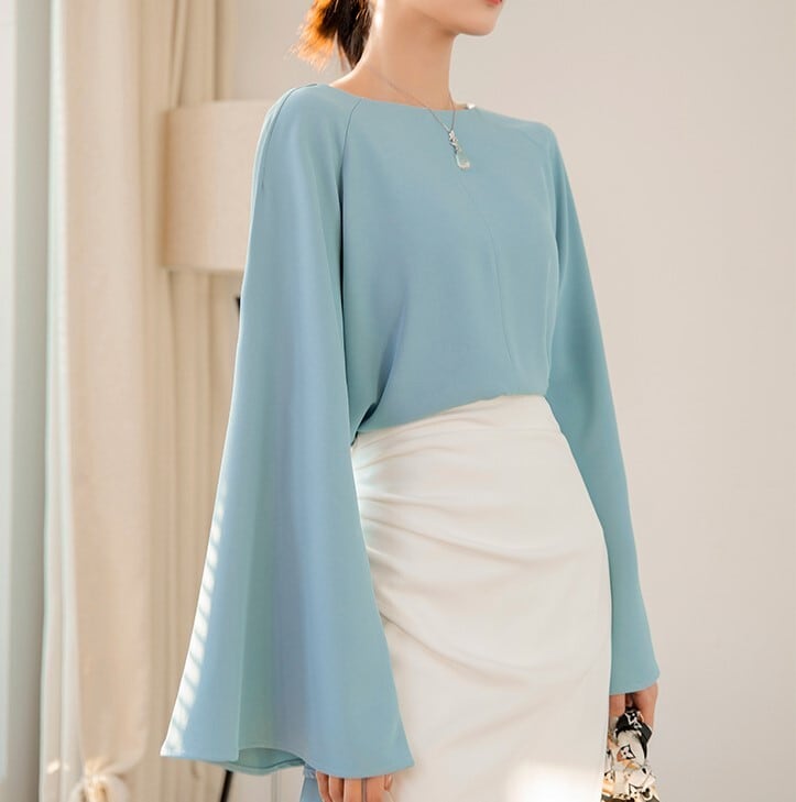 Sleeve flare elegant chiffon blouse 2022 Spring Collection