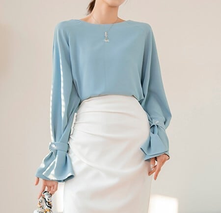 着用するだけで上品で大人可愛いムードが漂うスリーブフレアシフォンブラウス ♪