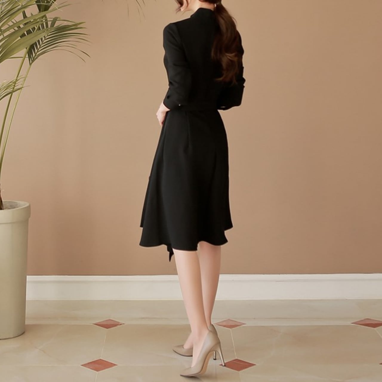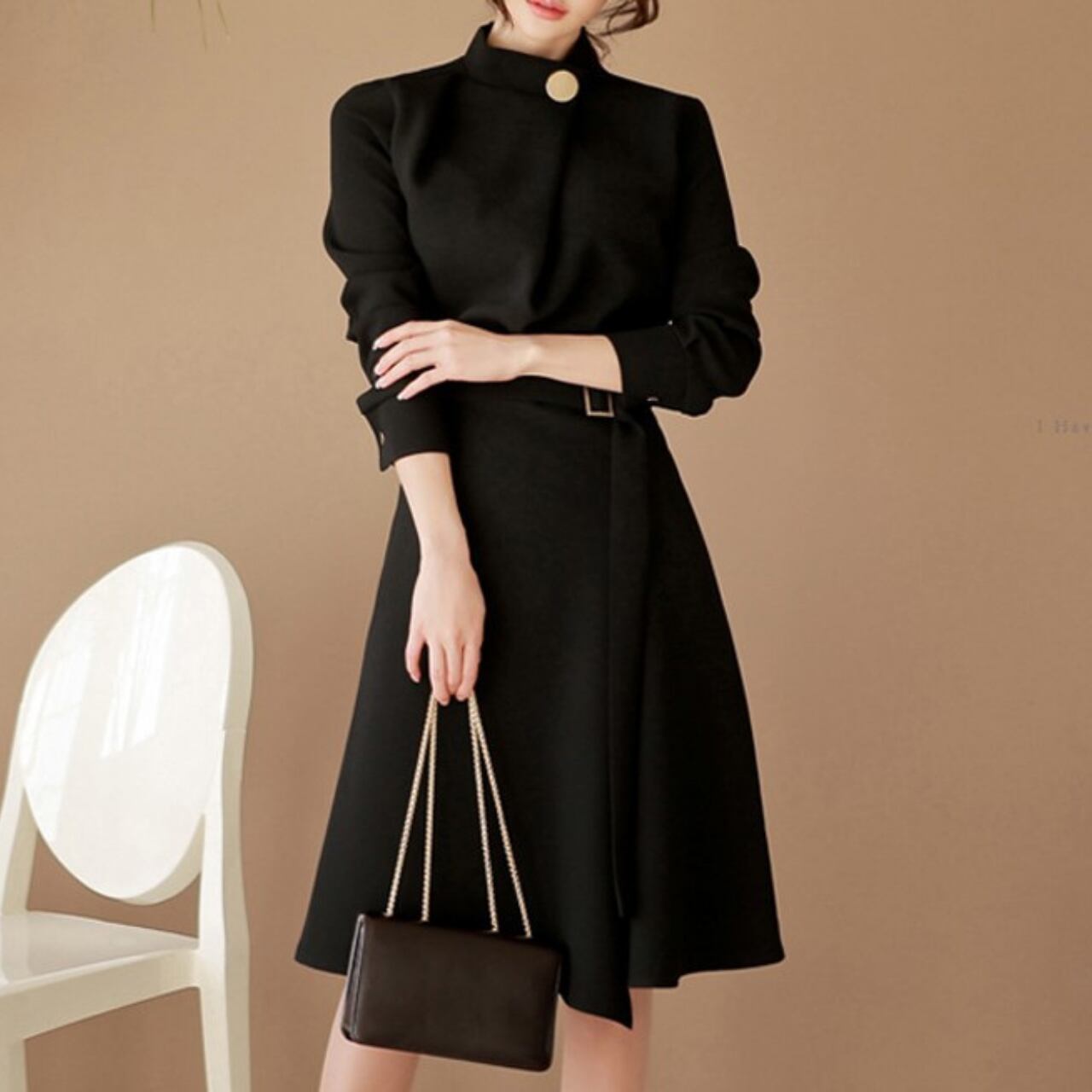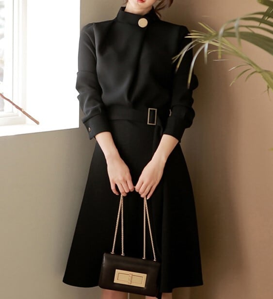 Waist strap elegant large swing dress ( 2color )