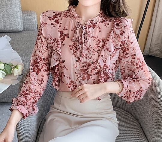 着用するだけで上品で大人可愛い雰囲気が漂うフローラルシフォンブラウス 。