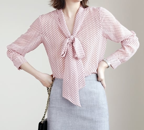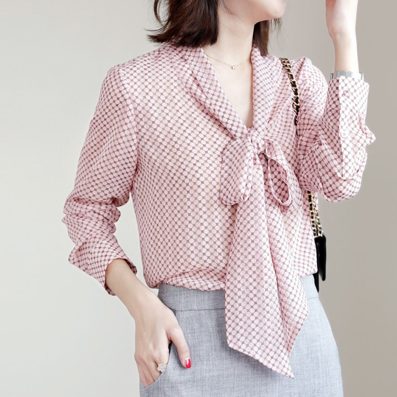 Chest tie elegant polka dot chiffon blouse