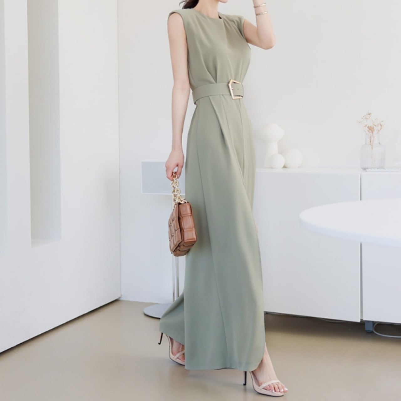 着用するだけで大人可愛い雰囲気が漂うスリーブレスエレガントスプリットワイドレッグジャンプスーツ。