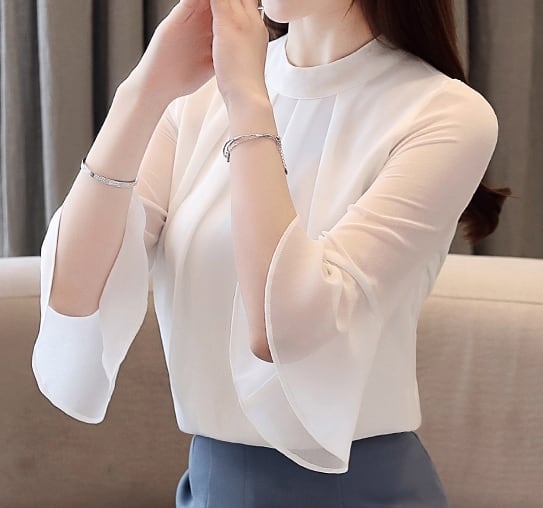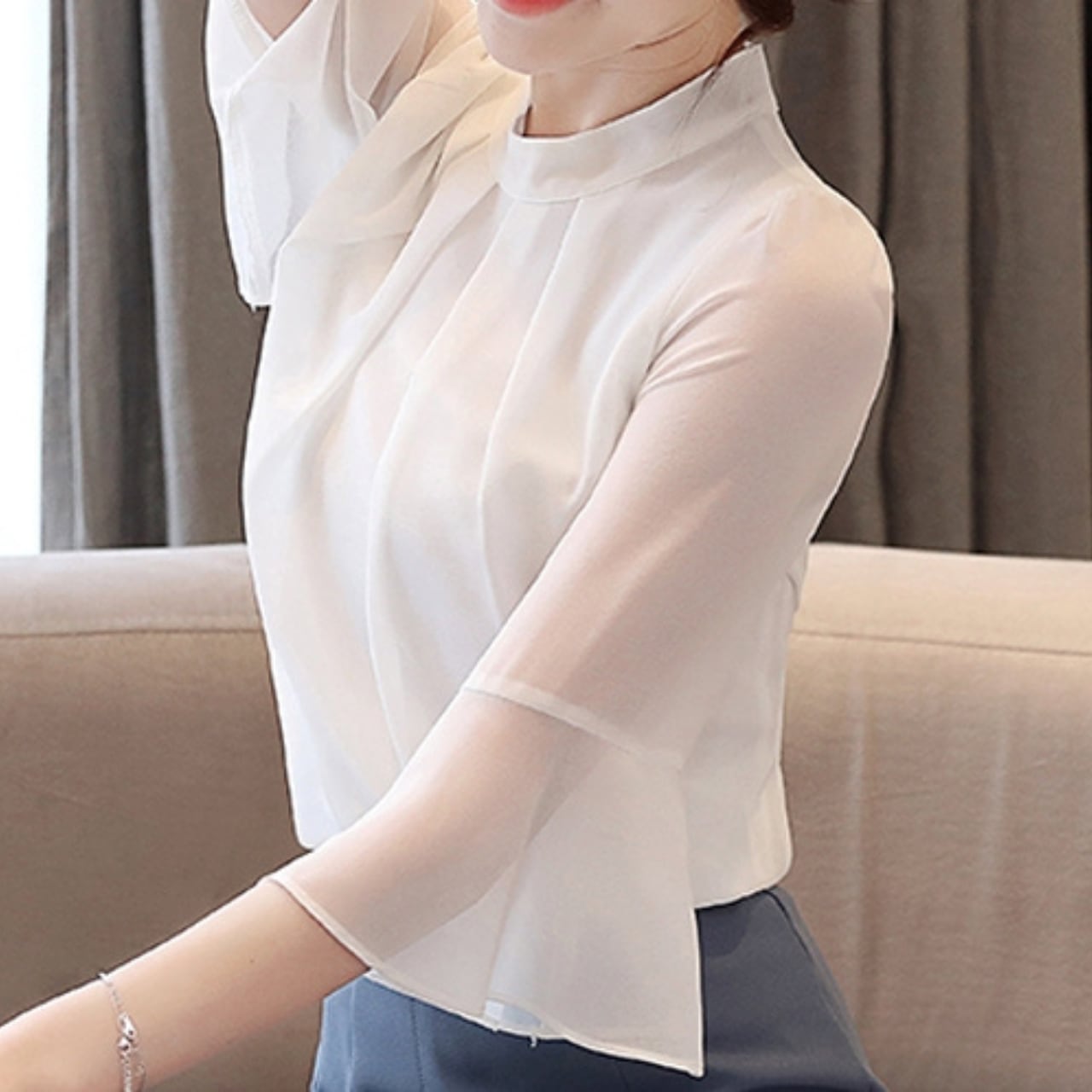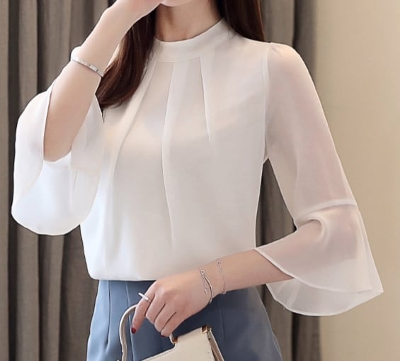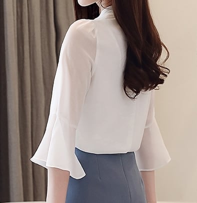 Half mesh sleeve elegant shirt