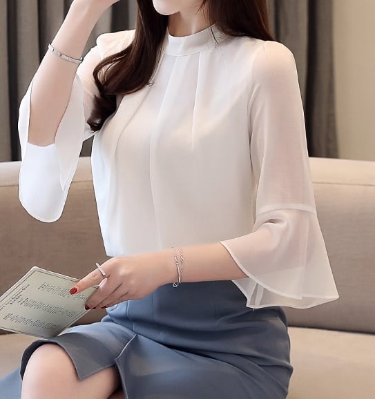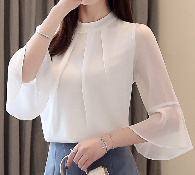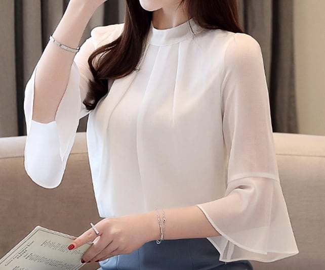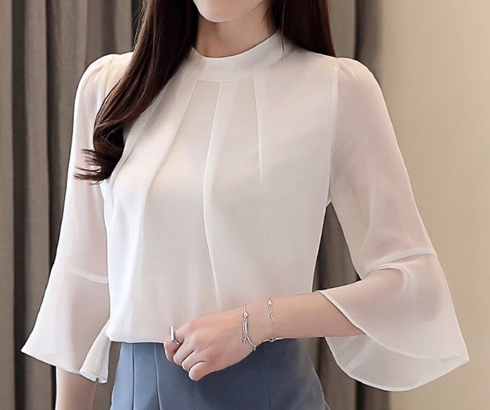 着用するだけで大人可愛さが漂うハーフメッシュスリーブエレガントシャツ。