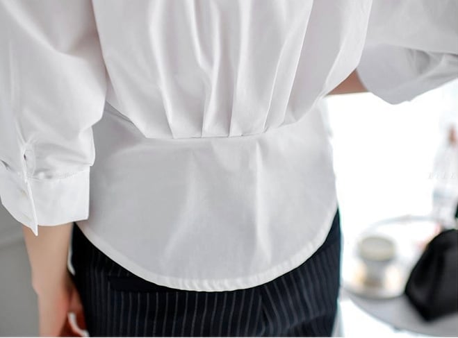着用するだけで上品さと大人可愛さが漂うウエストストスリムシャツ。