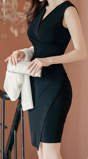 着用するだけでフェミニンな雰囲気が漂うスリーブレスエレガントアシンメトリックヘムドレス。