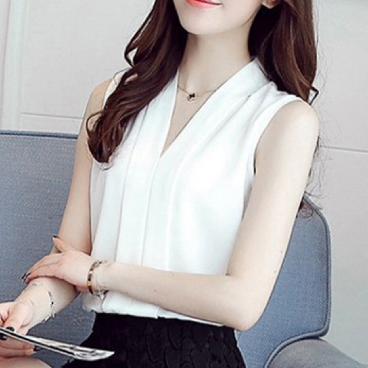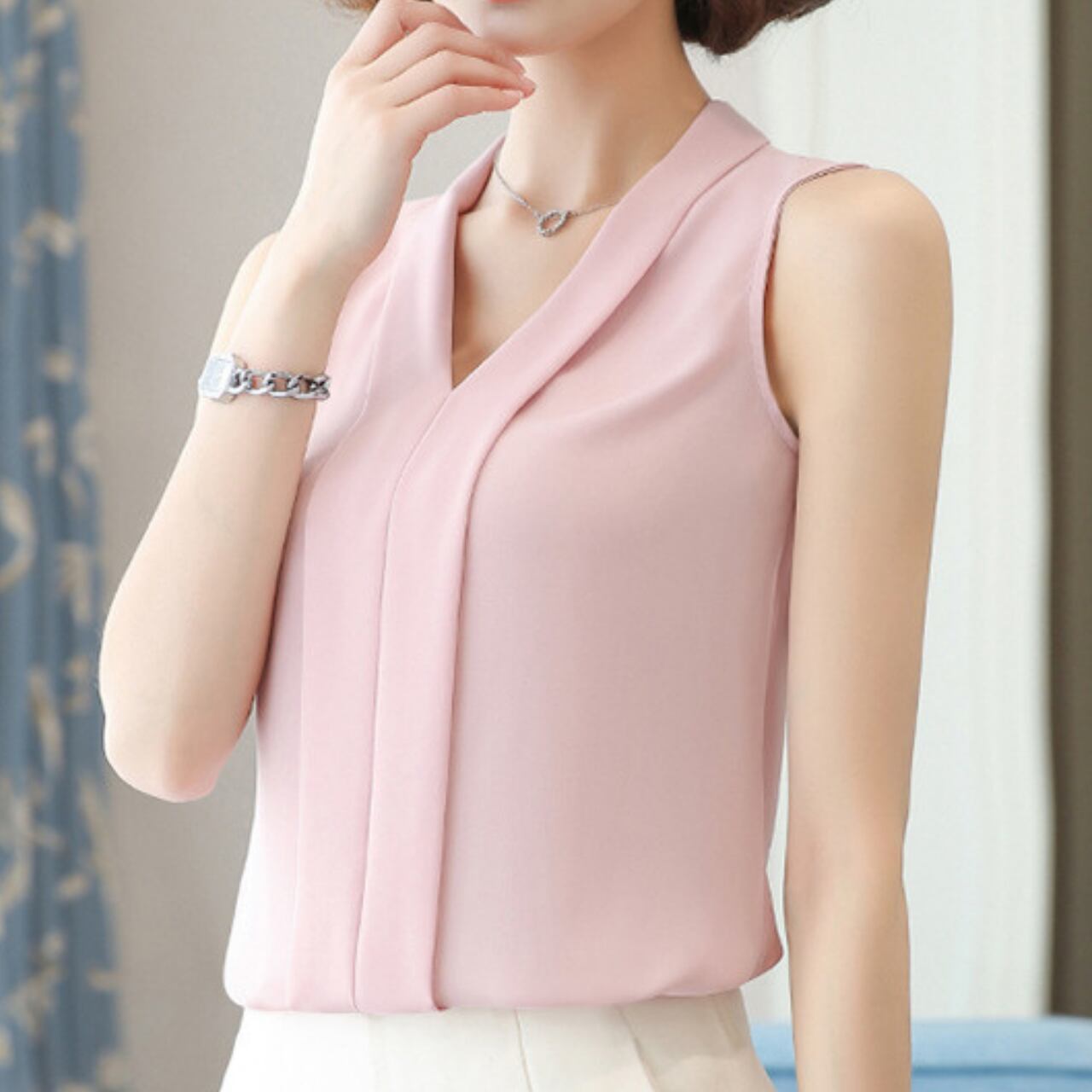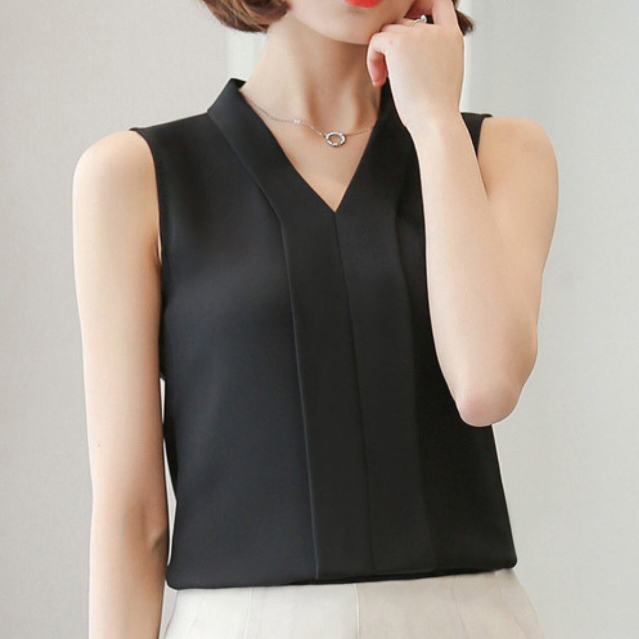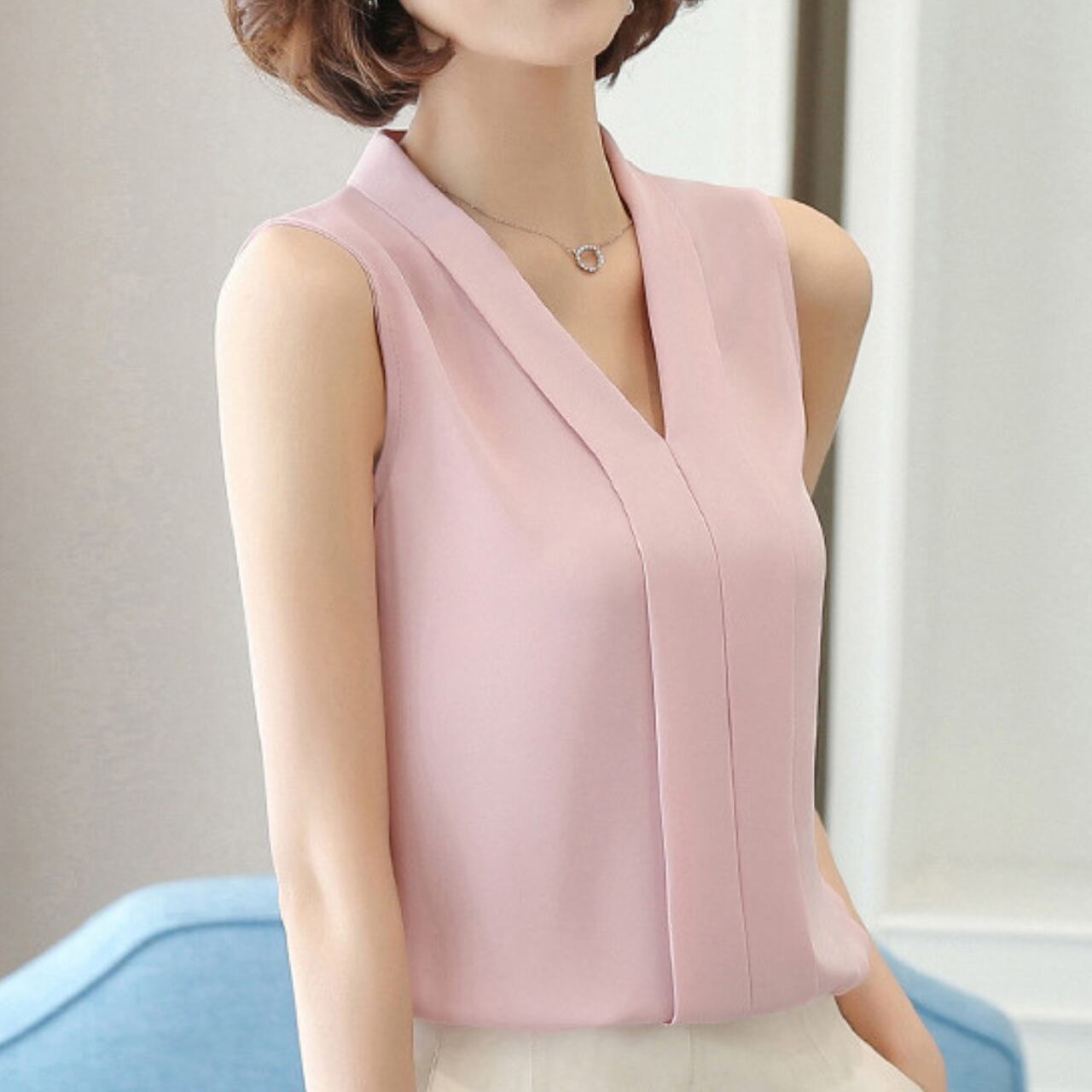 Sleeveless elegant V-neck chiffon shirt
