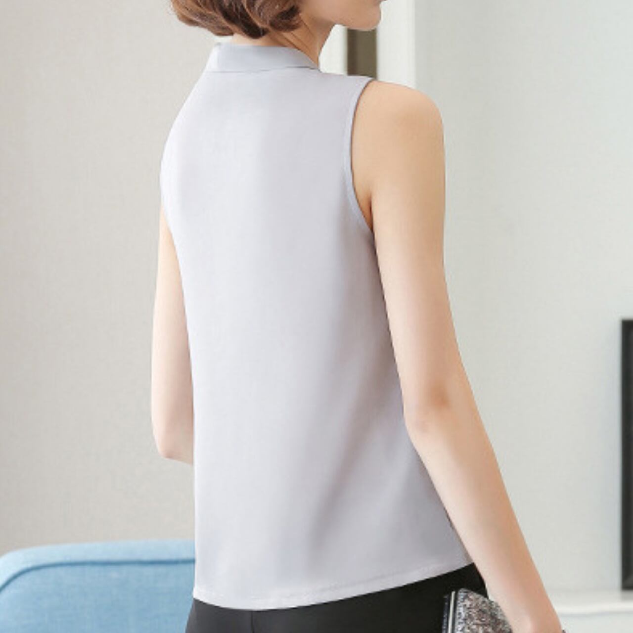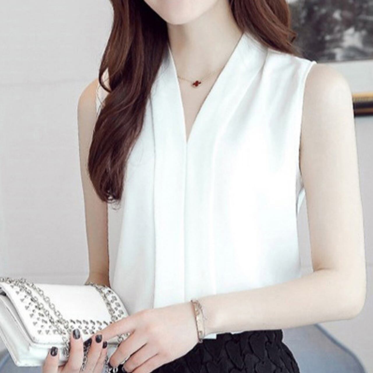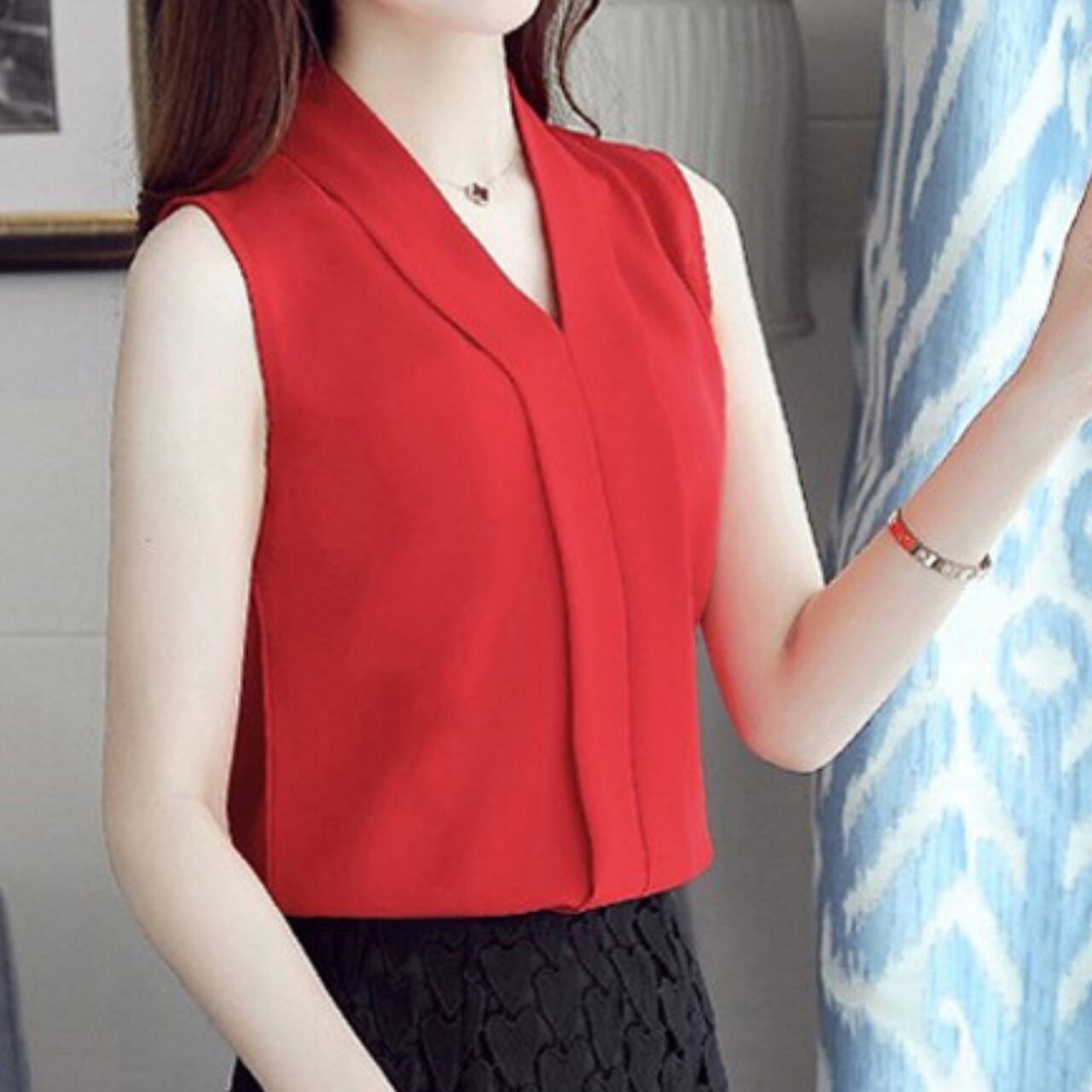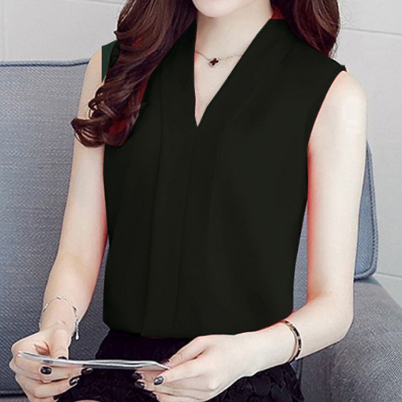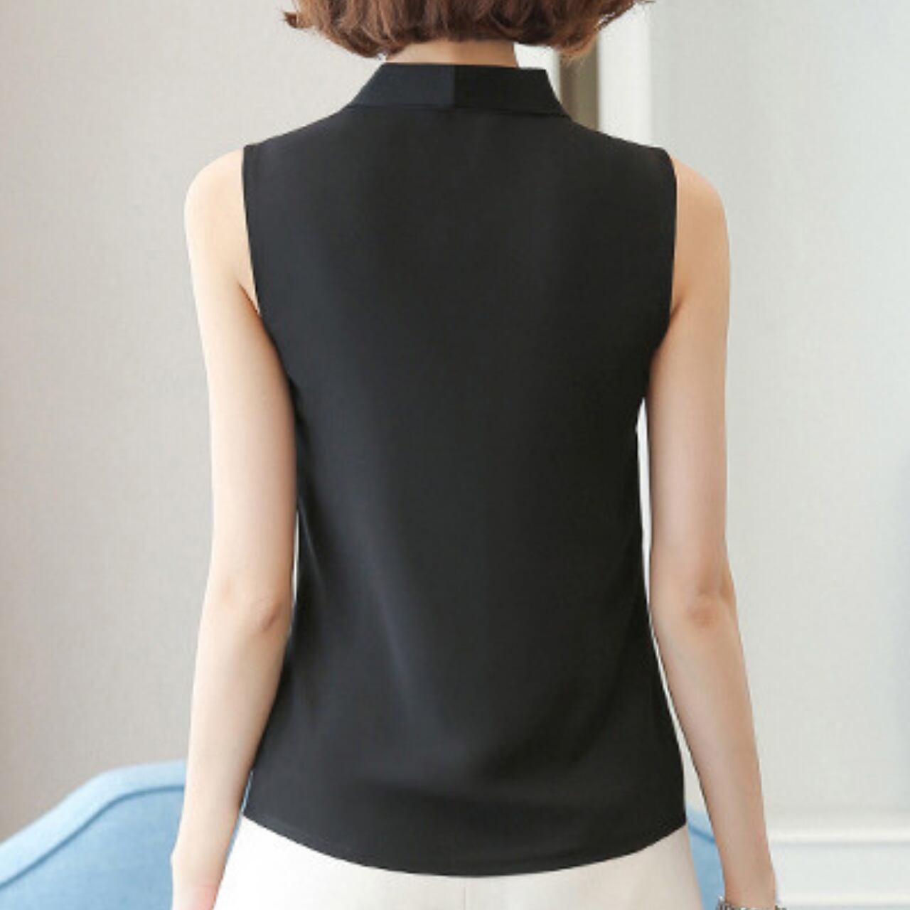 Sleeveless elegant V-neck chiffon shirt