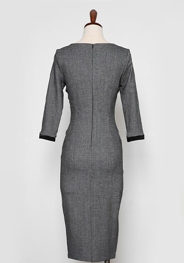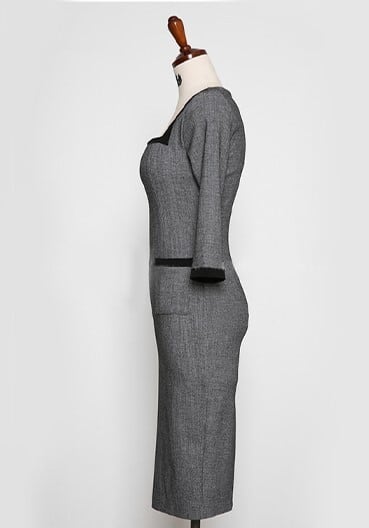 Three quarter sleeve elegant square neck middle dress