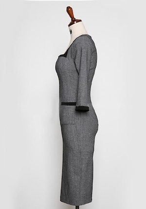 女性らしいシルエットでミドル丈、ハイウエストIラインがスタイルを引き締めます。