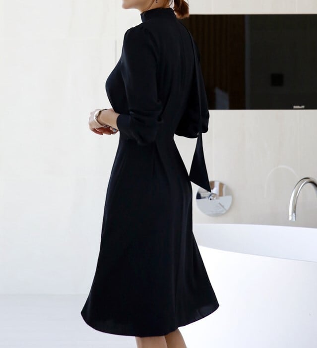 着用するだけで大人可愛い雰囲気が漂うチェストタイエレガントウエストスリムミドルドレス。