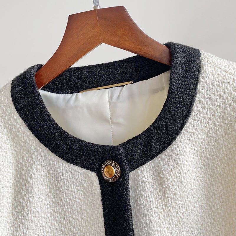 着用するだけで上品でフェミニンな雰囲気が漂うエレガントレトロツイードジャケット。