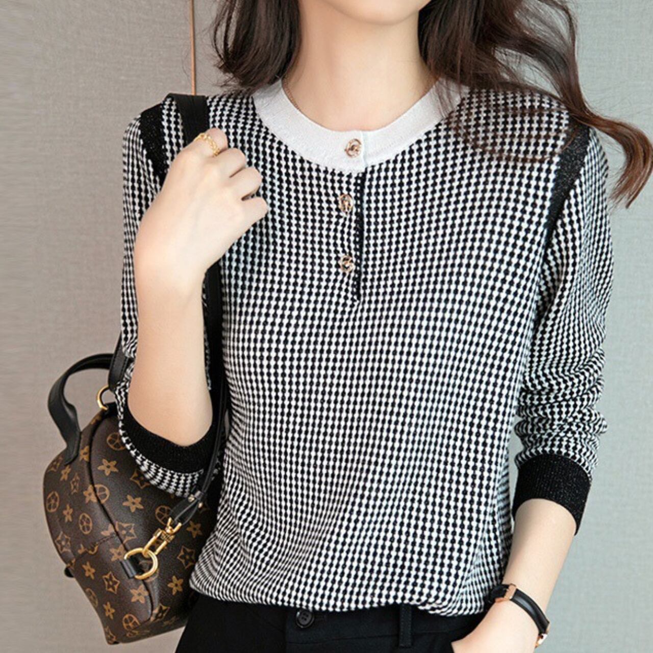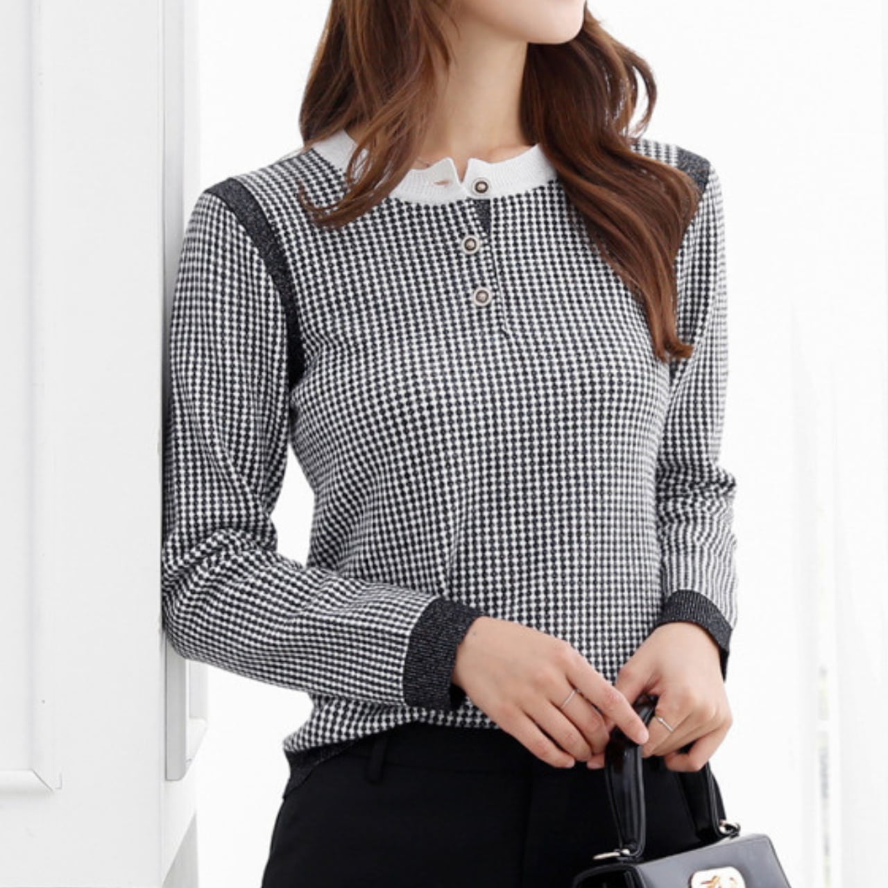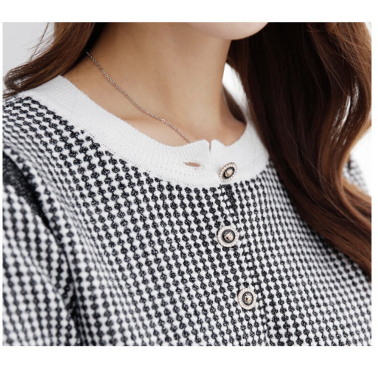 着用するだけで上品で大人可愛い雰囲気が漂うエレガント千鳥格子ニット。