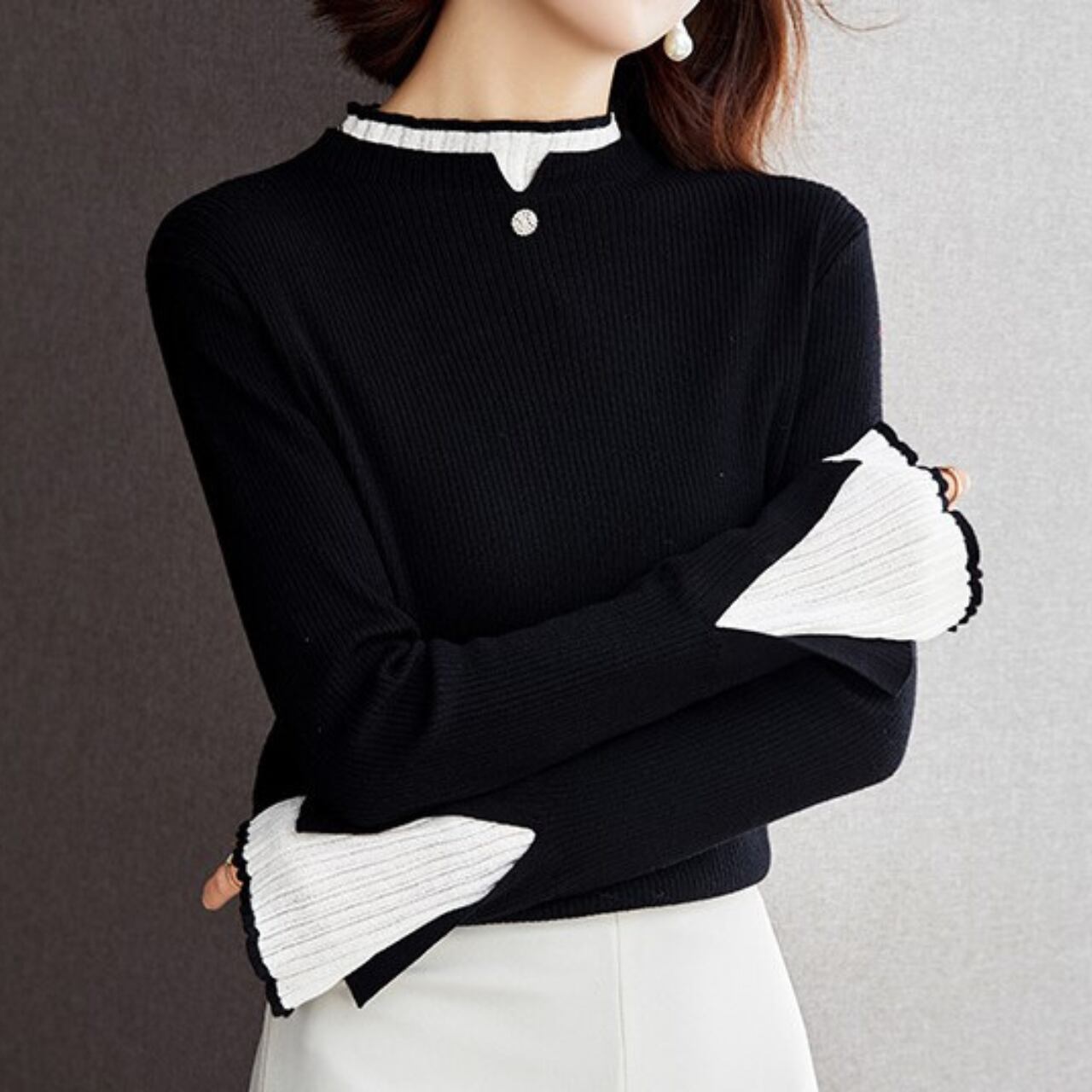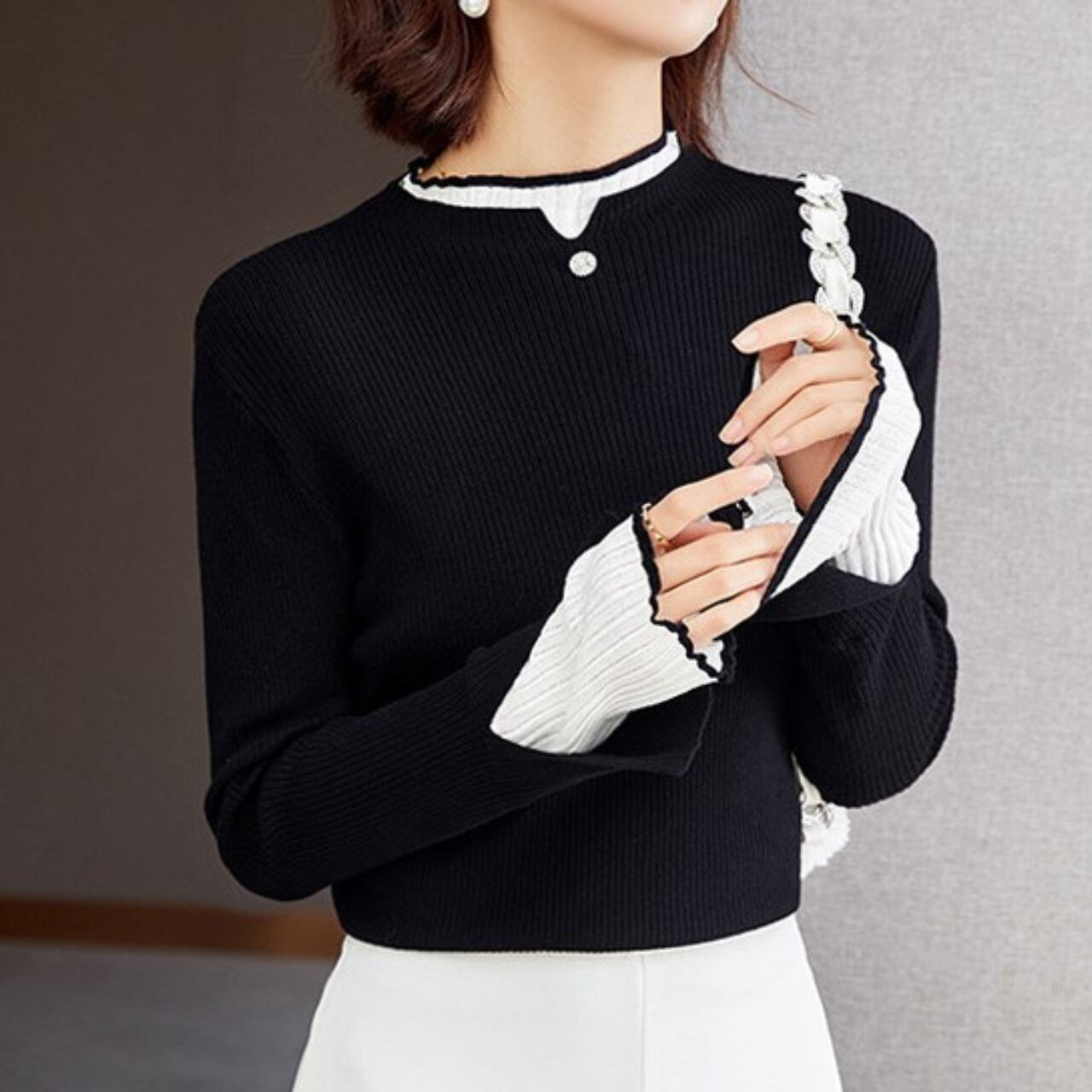 胸元と袖口のフェイクツーピースがアクセント。