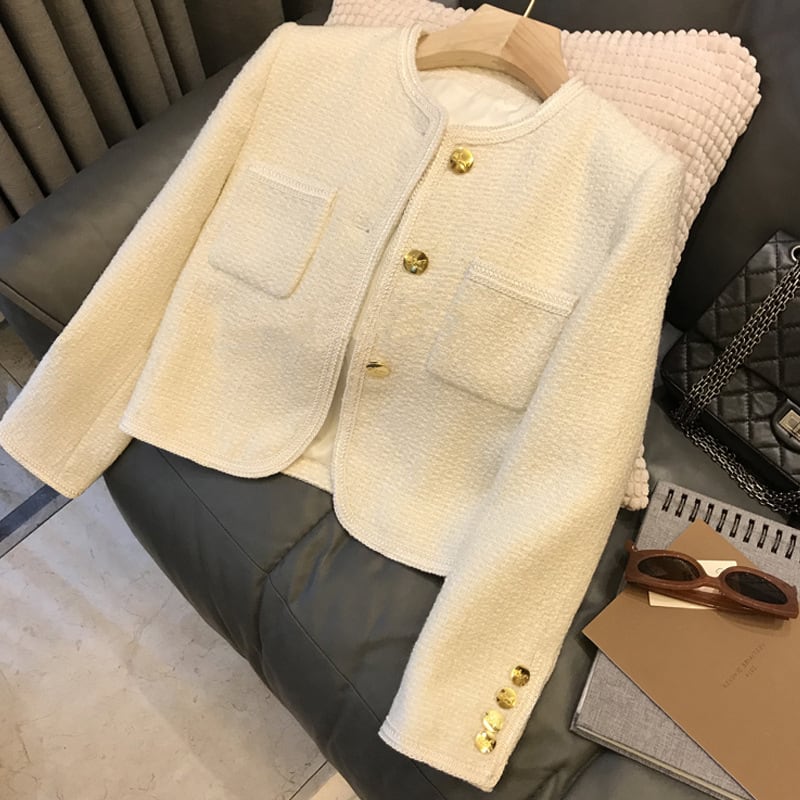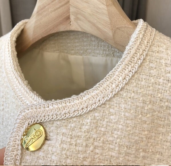 羽織るだけでフェミニンな雰囲気が漂うエレガントショートツイードジャケット。