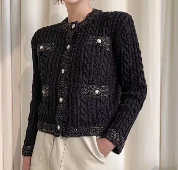 着用するだけで上品で大人可愛い雰囲気が漂うパールボタンエレガントニットカーディガン。