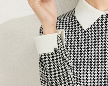 甘すぎないポロカラーと千鳥格子がアクセント。