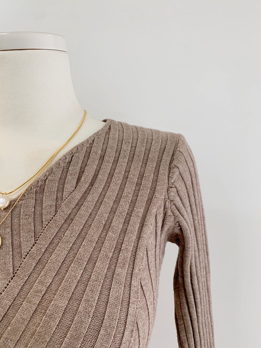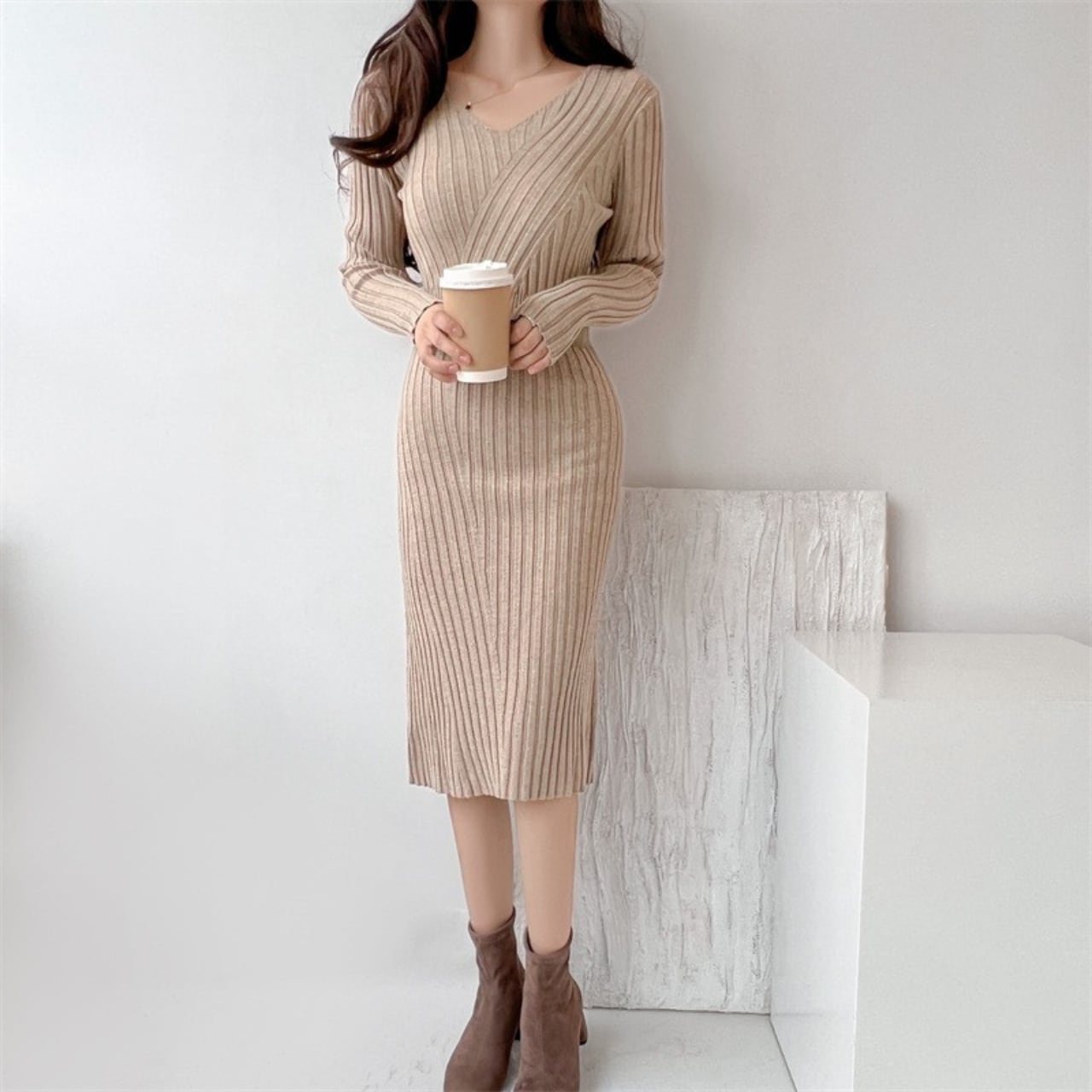 Waist slim elegant light rib knit dress ( 3color )