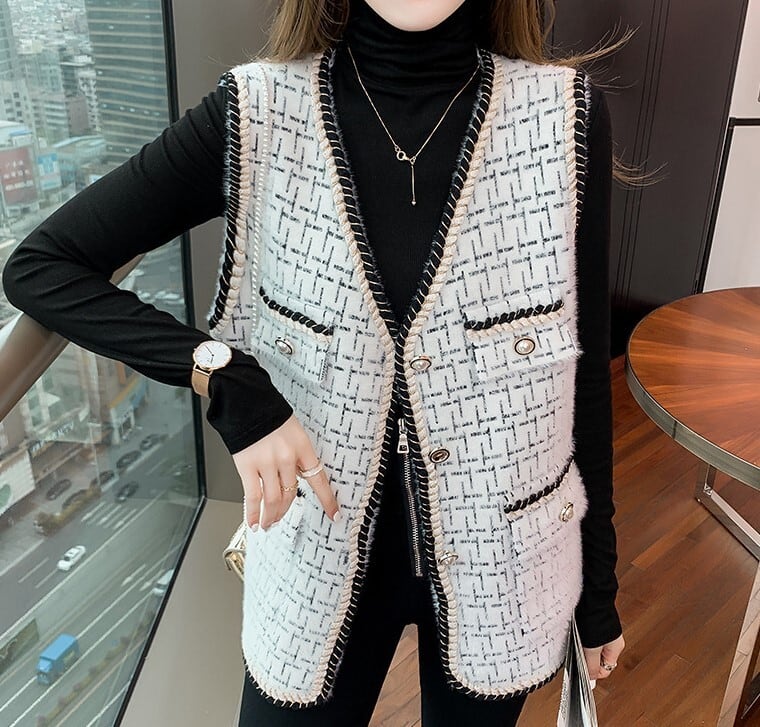 Elegant tweed gilet ( 2color )