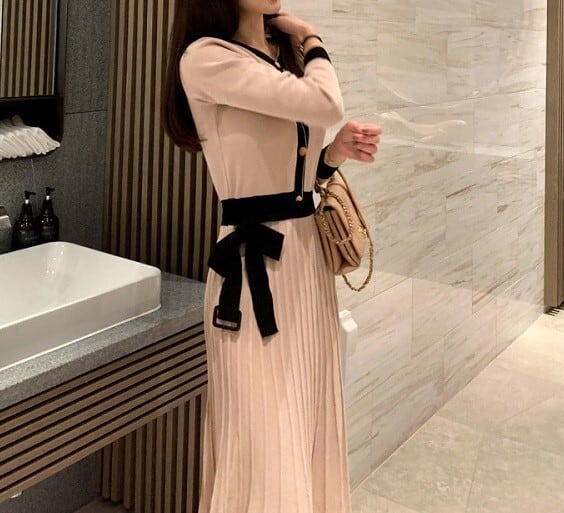 Single breast elegant pleats knit dress