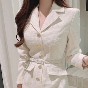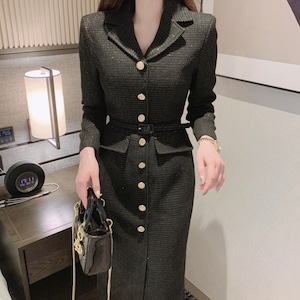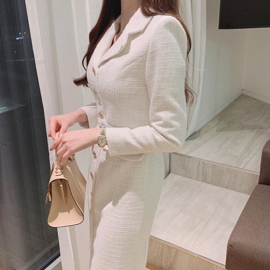 Single breast elegant long tweed dress ( 2color )