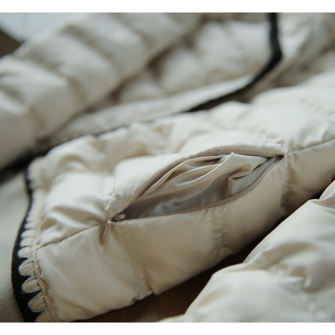 羽織るだけでフェミニンな雰囲気が漂うスタンドカラーエレガントライトダウンジャケット。