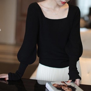 着用するだけで上品さと大人可愛さが漂うスクエアネックエレガントホーンスリーブニット。