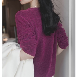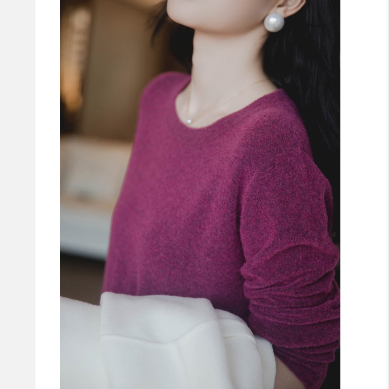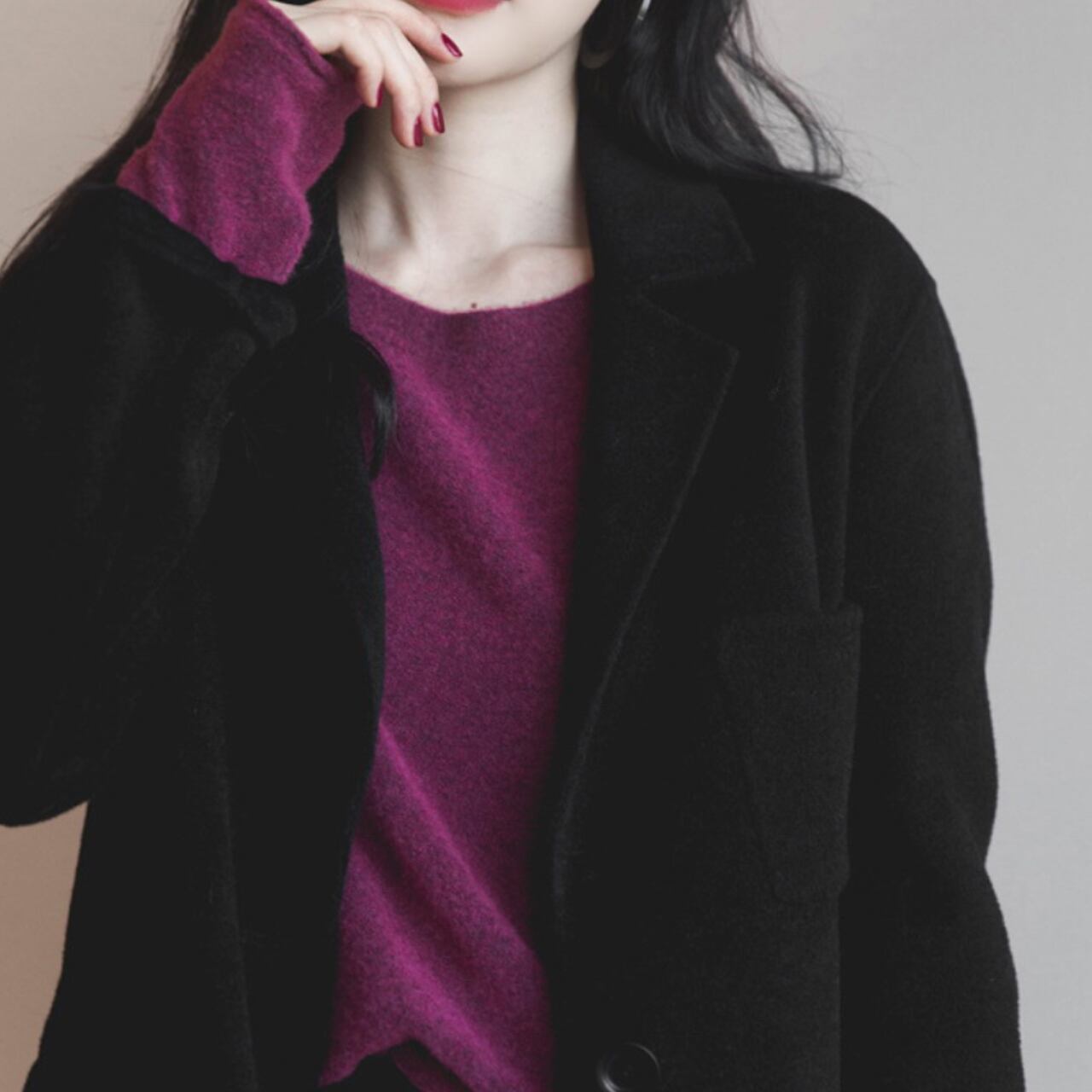 1枚着用するだけで大人可愛いコーデが完成するラウンドネックエレガントレトロニット。