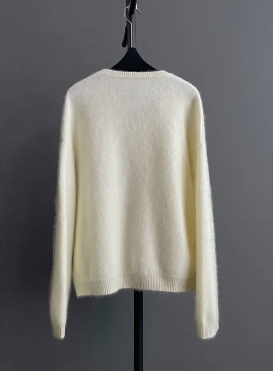 1枚着用するだけで大人可愛いコーデが完成するエレガンフワフワベルベットニット。