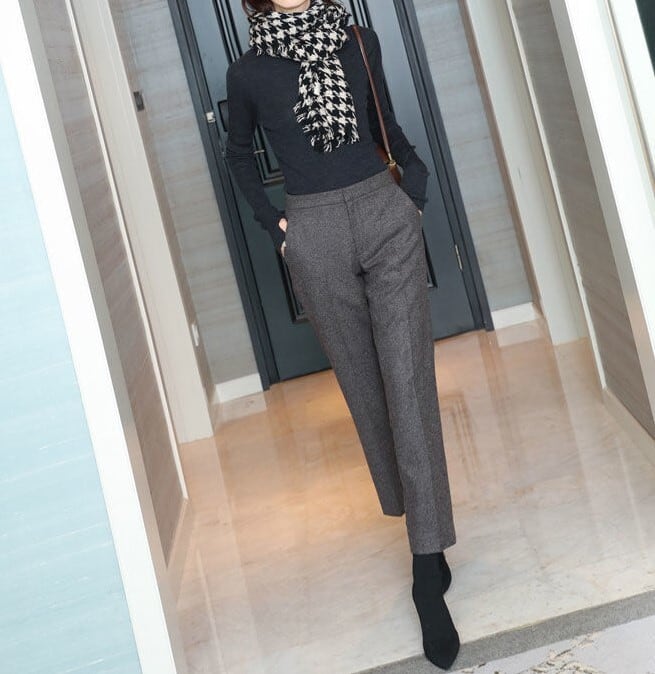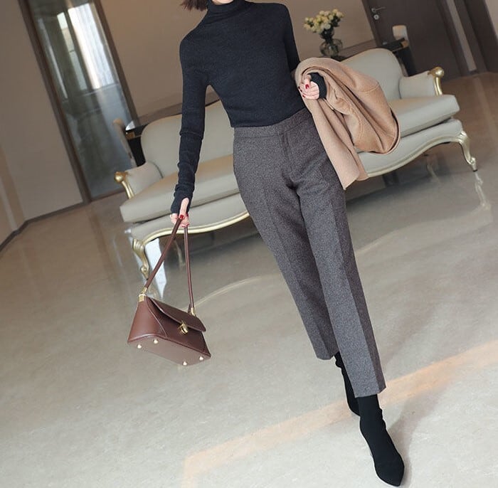 High waist elegant cropped straight wool pants