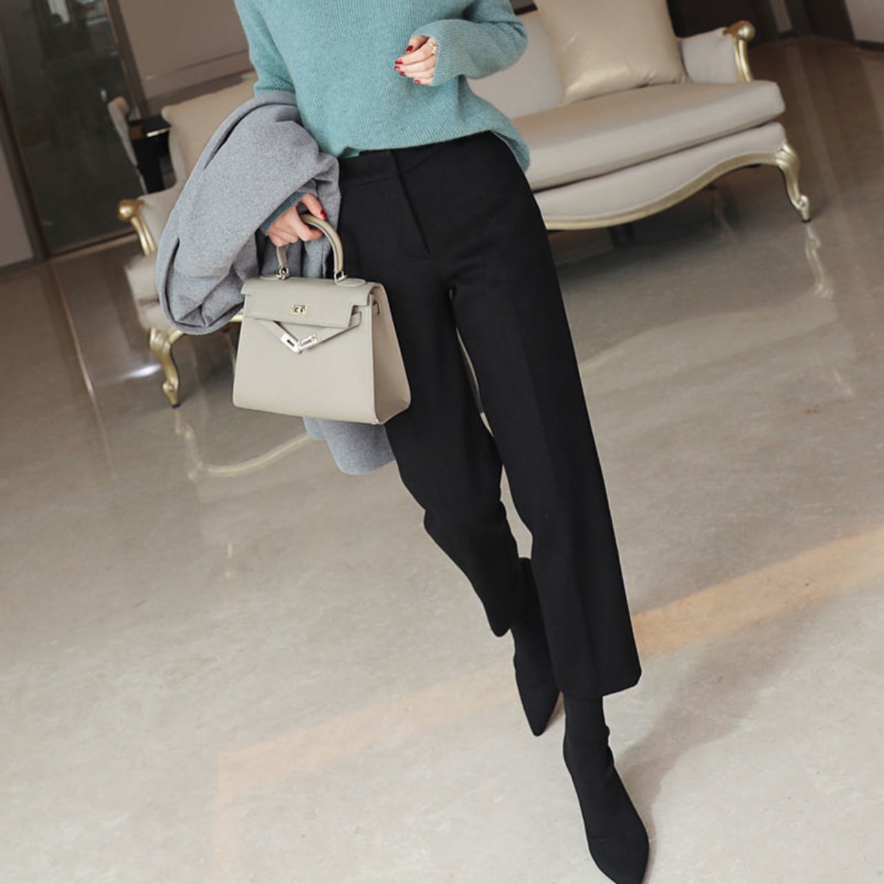 High waist elegant cropped straight wool pants ( 2color )