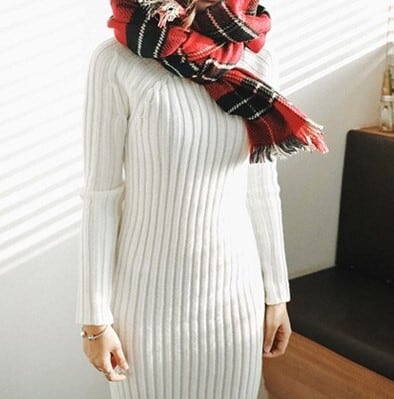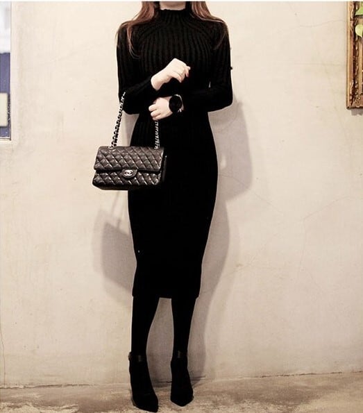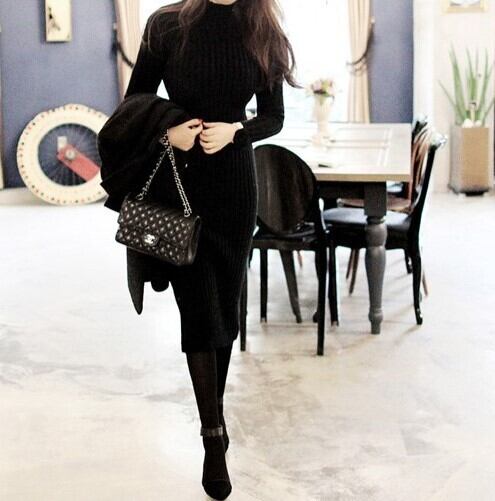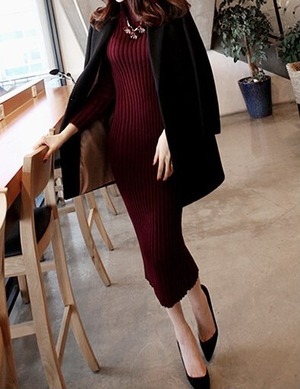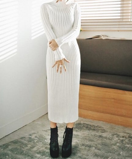 着用するだけでフェミニンな雰囲気が漂うハイネックエレガントリブニットロングドレス。