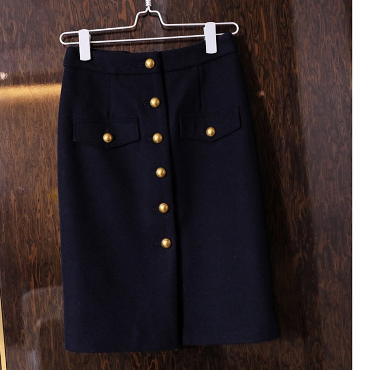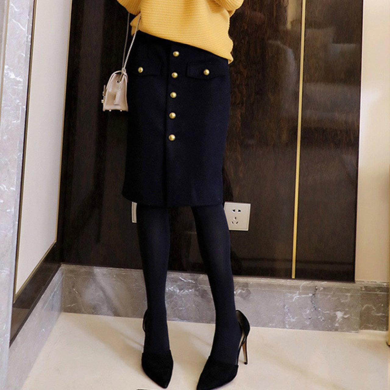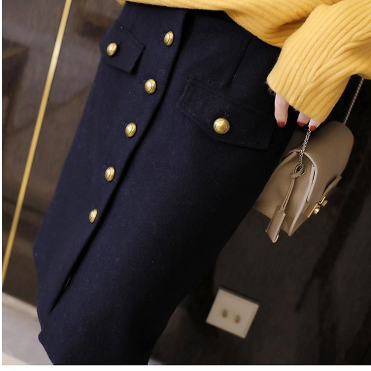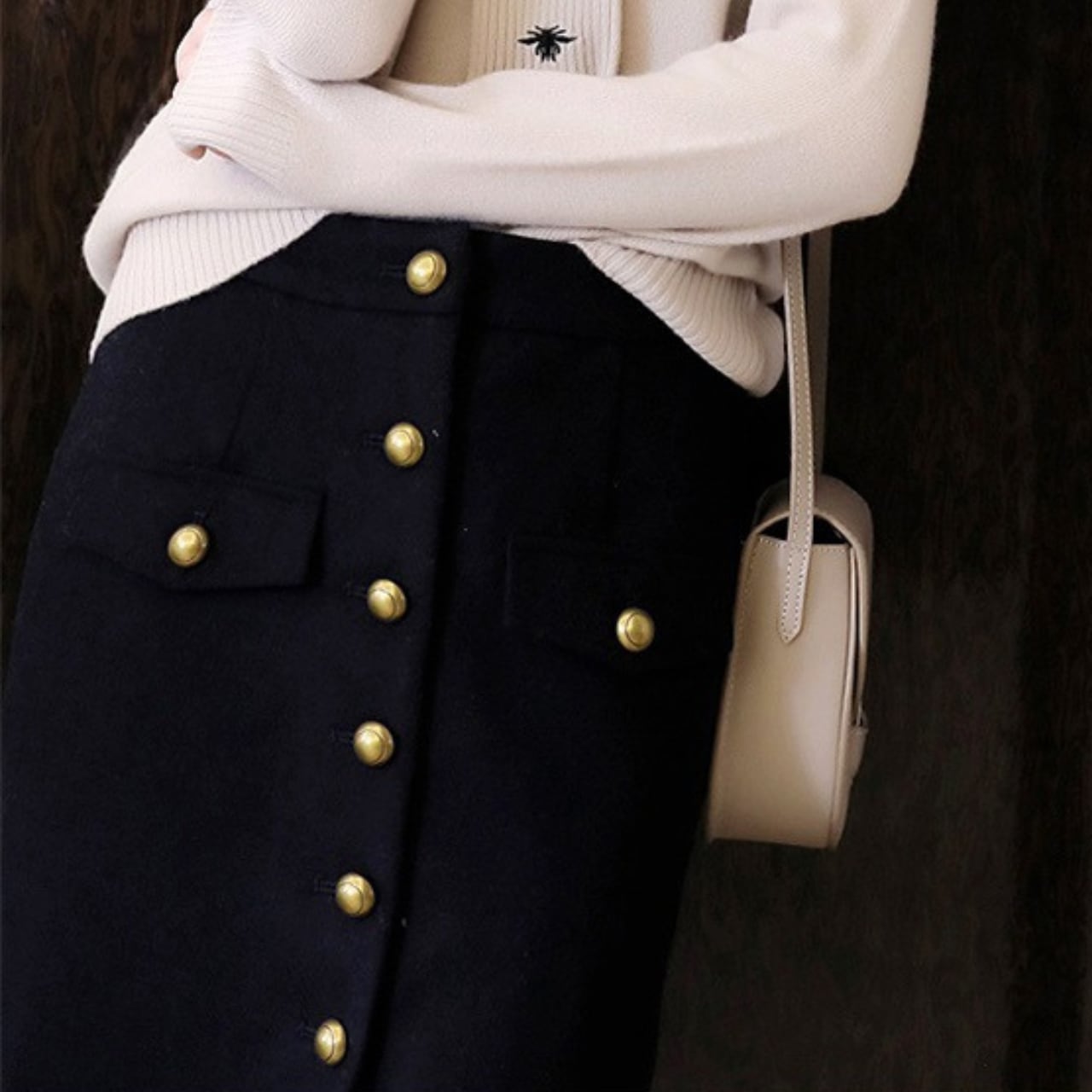 着用するだけで大人可愛いムードが漂うシングルブレストエレガントミドルウールスカート。