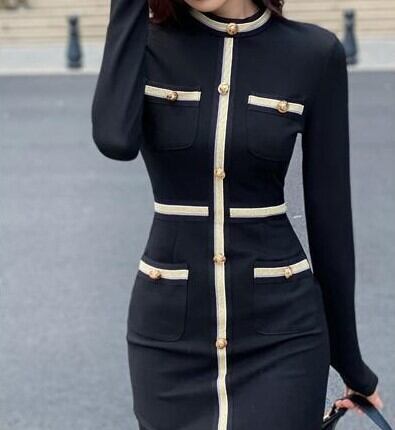 Single breast elegant waist slim middle knit dress
