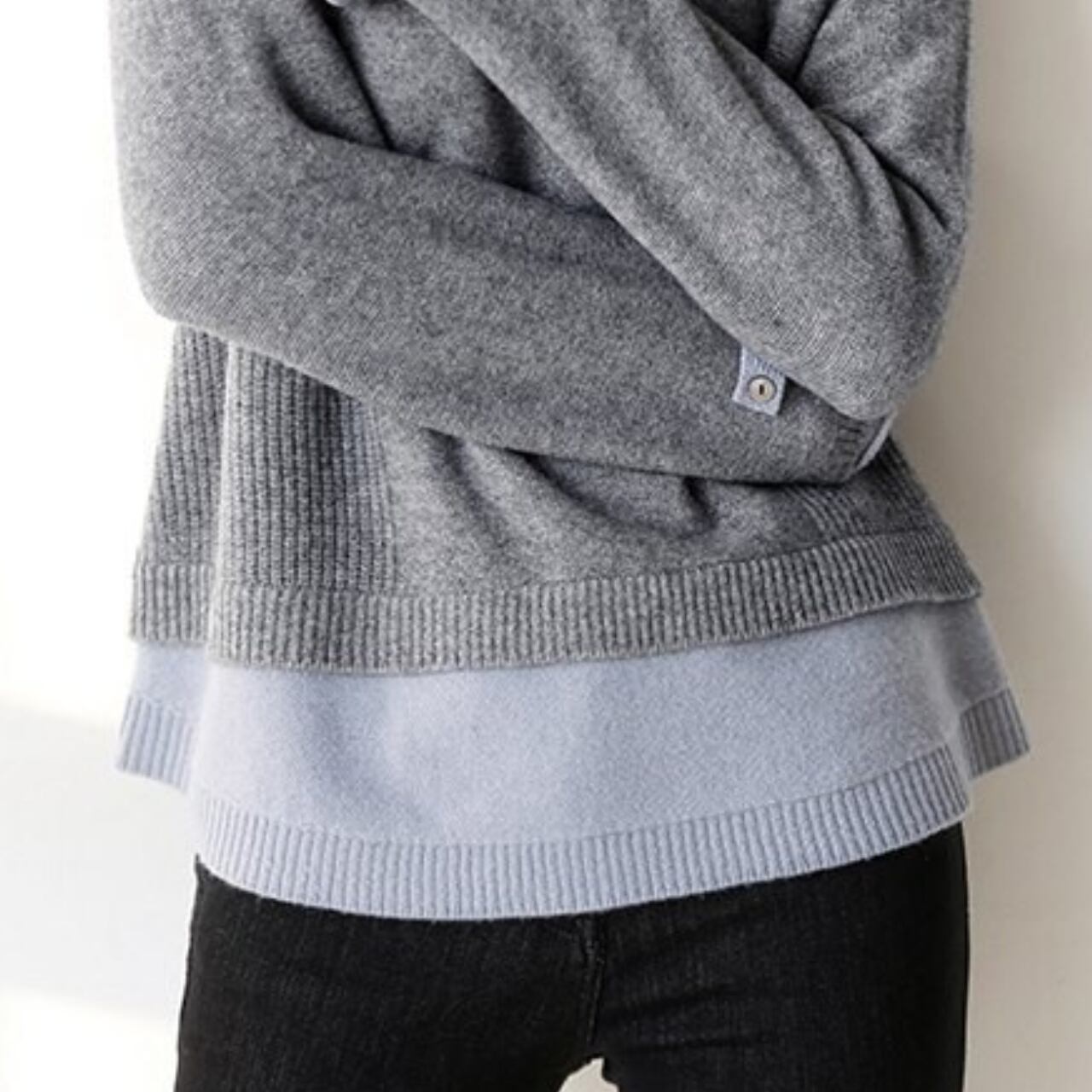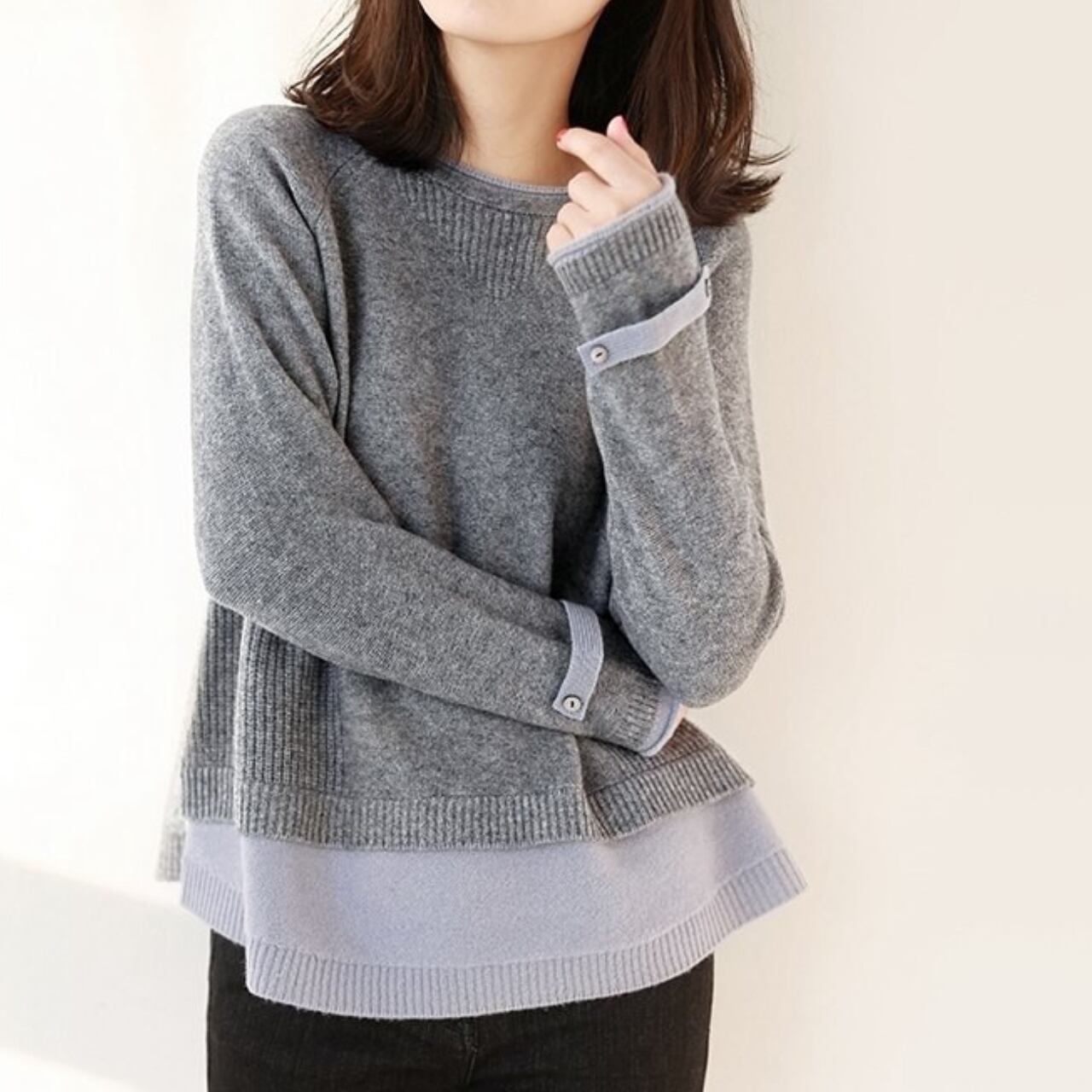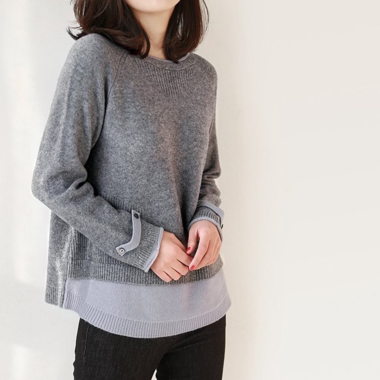 着用するだけで上品で大人可愛い雰囲気が漂うフェイクツーピースエレガントニット。