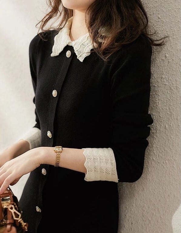 着用するだけで大人可愛い雰囲気が漂うポロカラーエレガントシングルブレストミドルニットドレス。