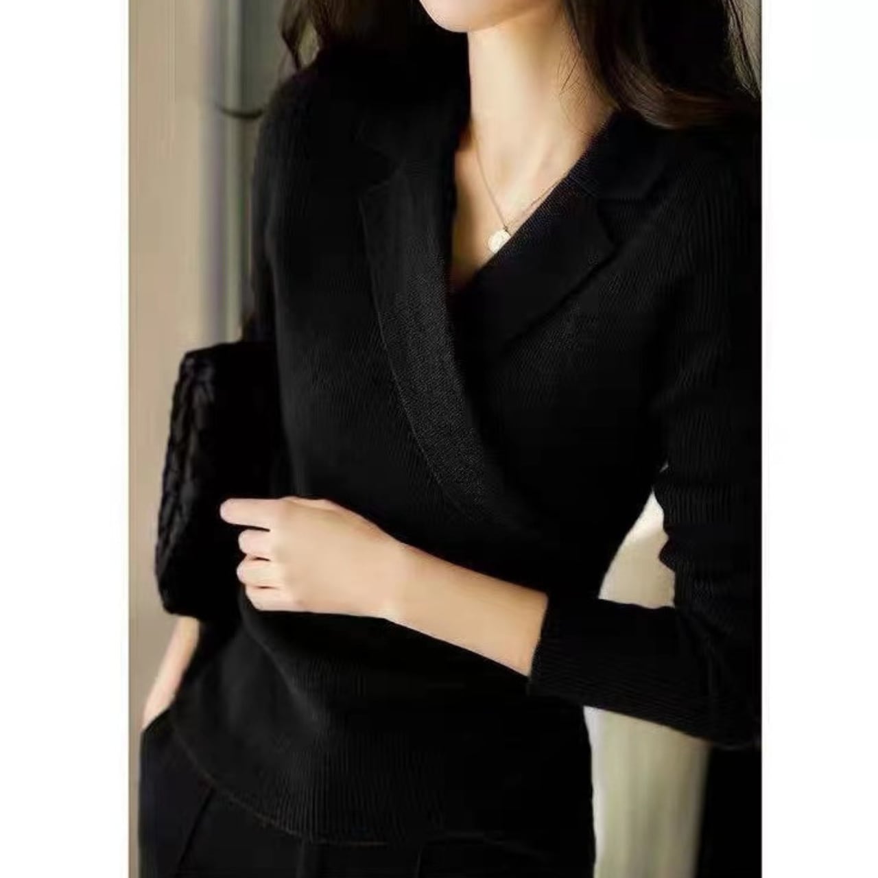 Suit collar elegant waist slim knit