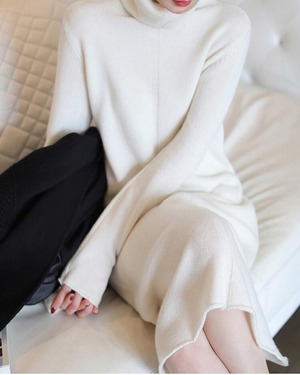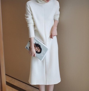 着用するだけでフェミニンな雰囲気が漂うハイネックエレガントロングニットドレス。