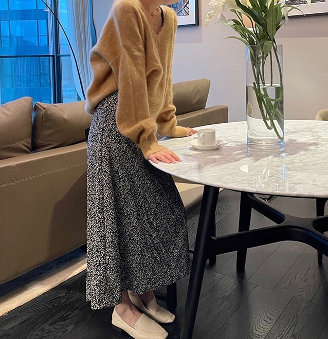 着用するだけで大人可愛い雰囲気が漂うブイネックエレガントフラッフィーニット。