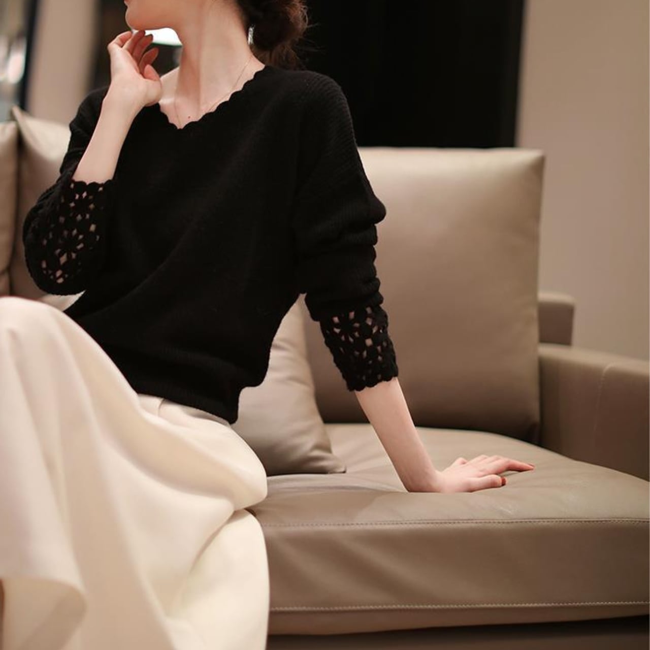 V neck elegant sleeve lace knit