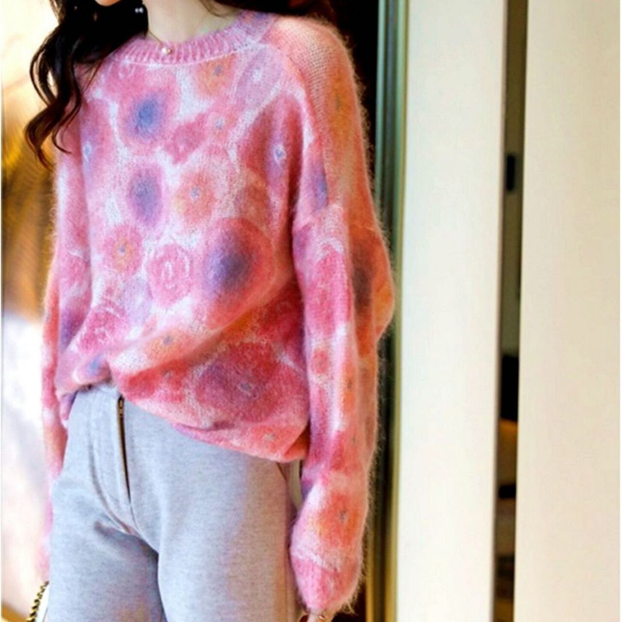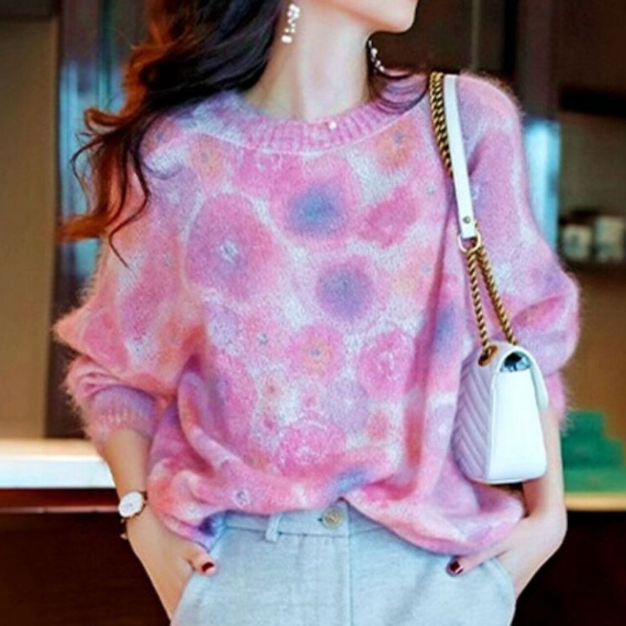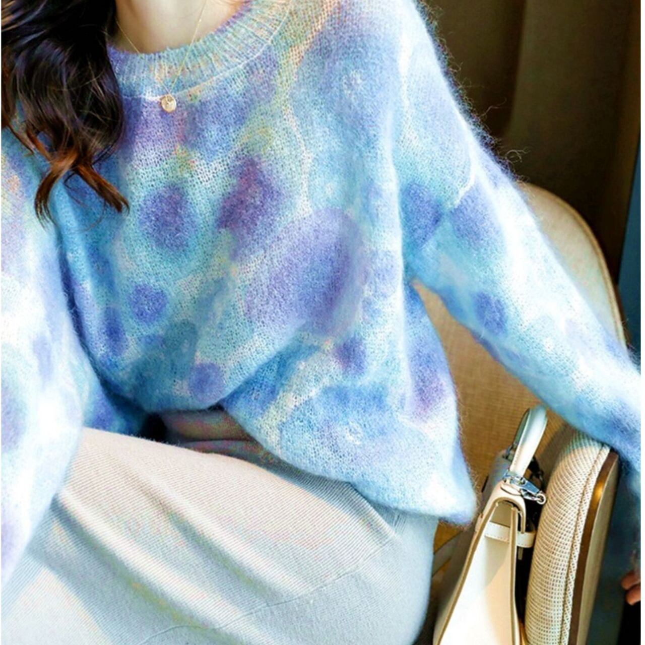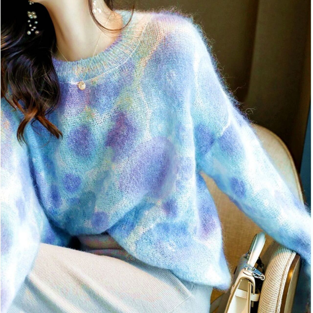1枚着用するだけで大人可愛いコーデが完成するエレガントレインボーニット。