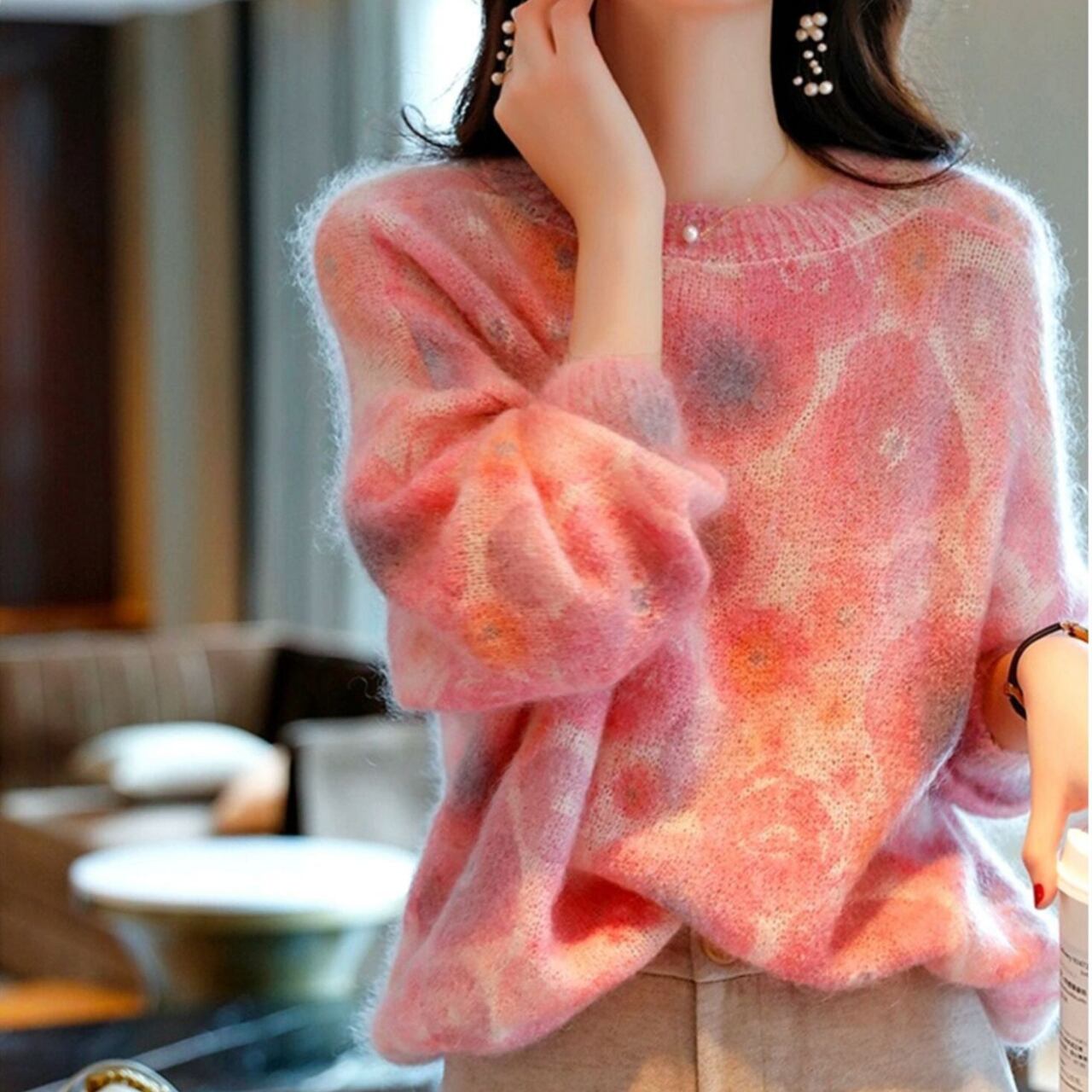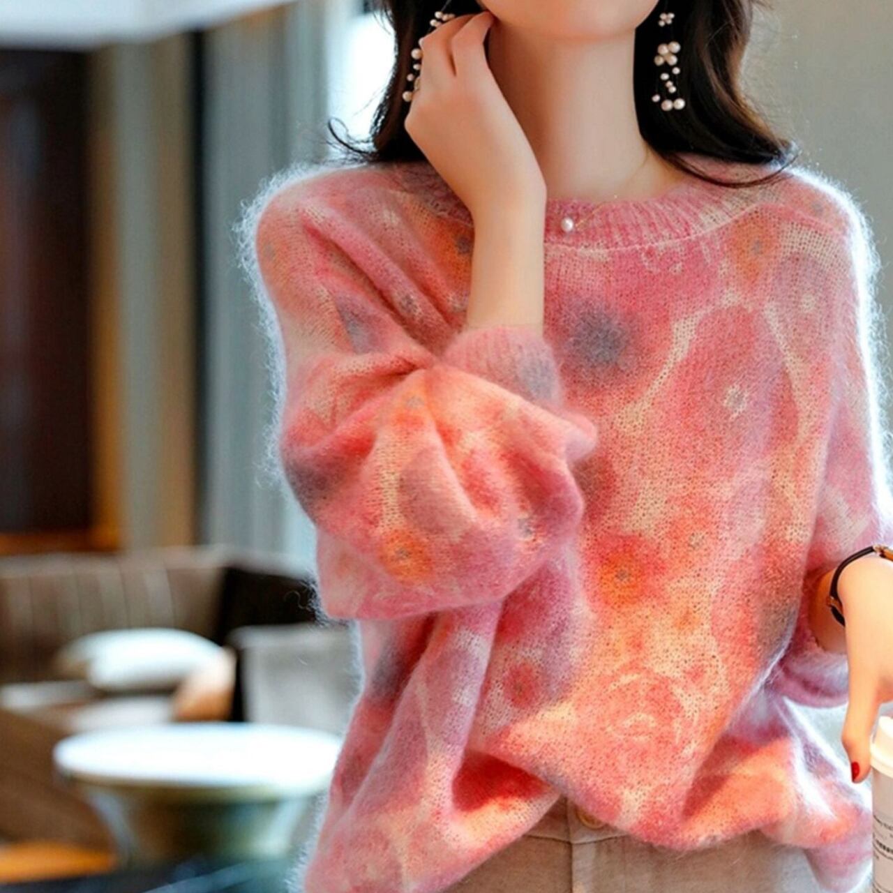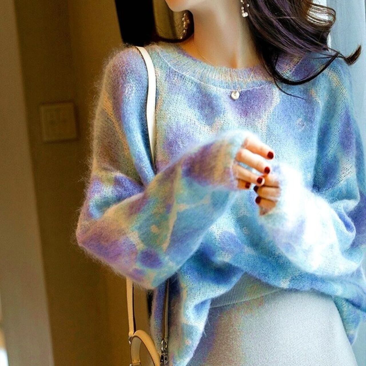 1枚着用するだけで大人可愛いコーデが完成するエレガントレインボーニット。