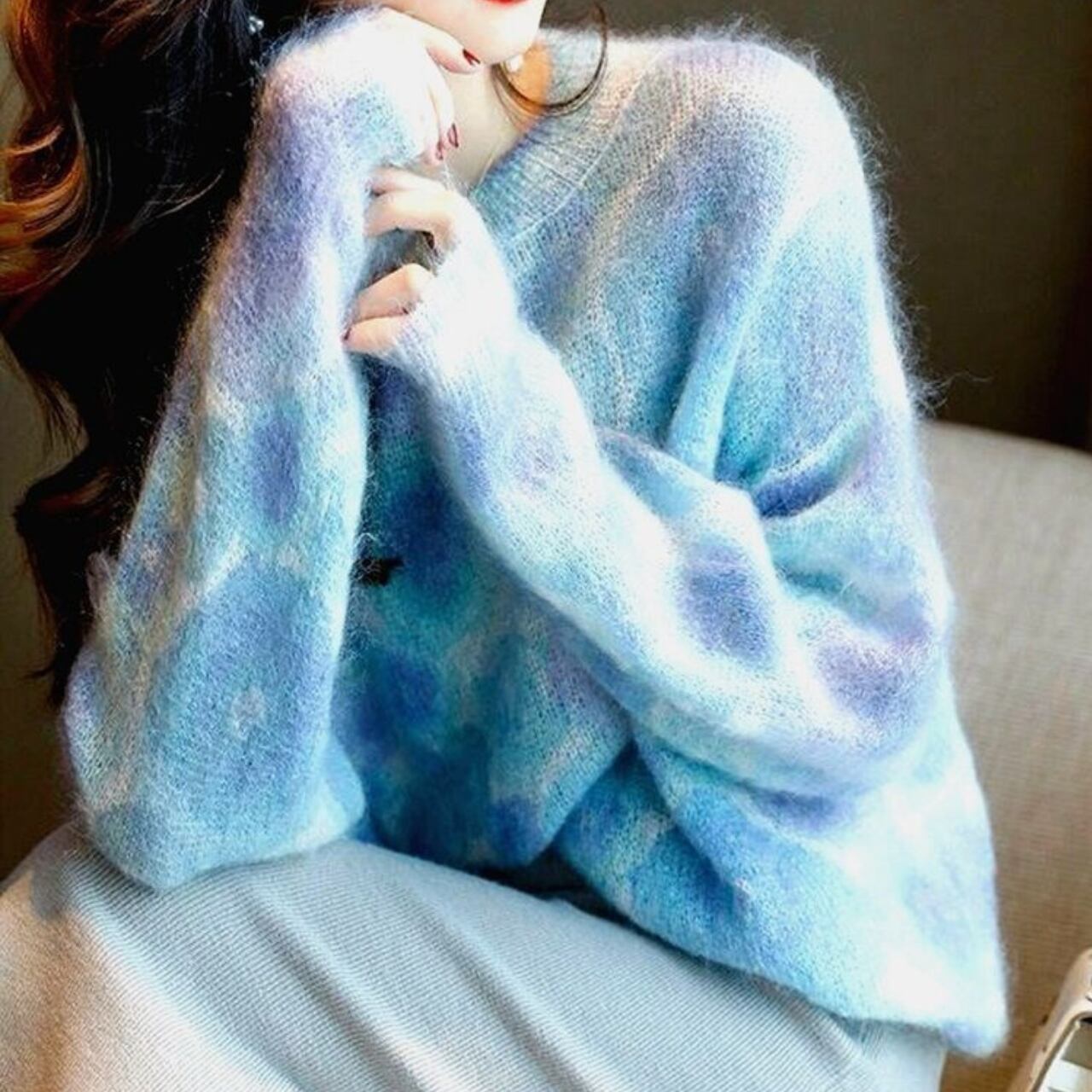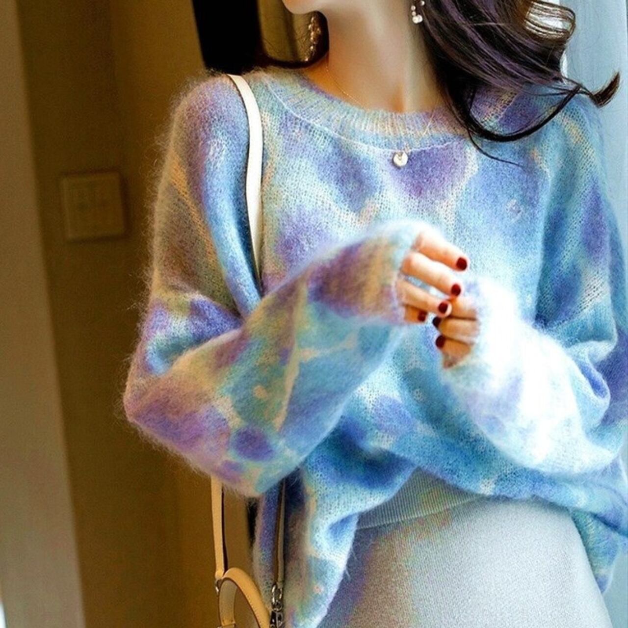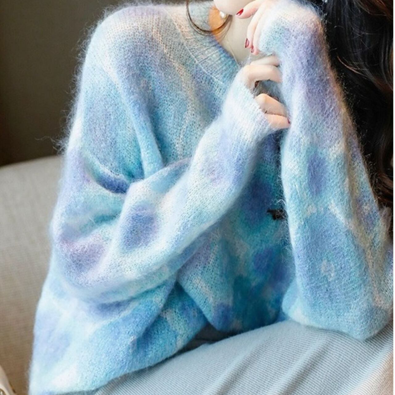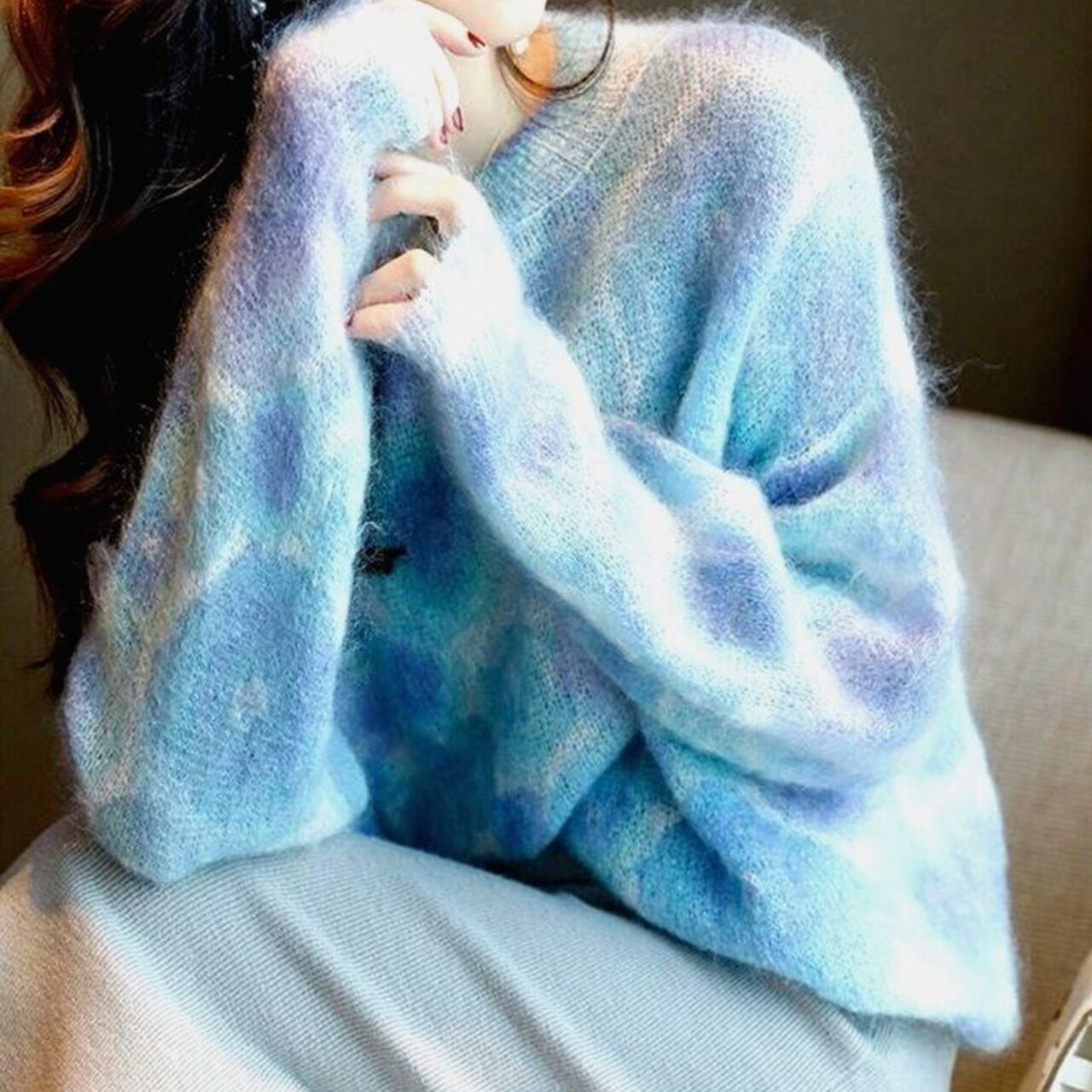 1枚着用するだけで大人可愛いコーデが完成するエレガントレインボーニット。
