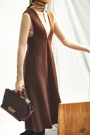 Sleeveless elegant V neck middle knit dress ( 2color )