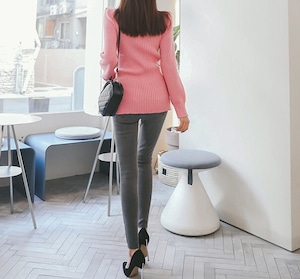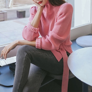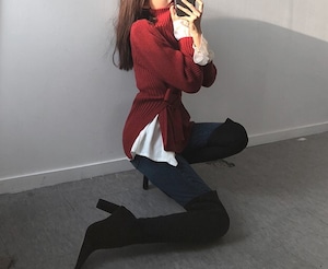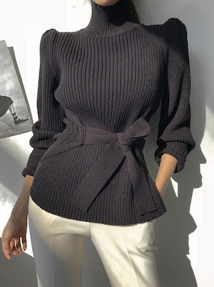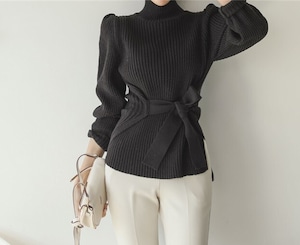 着用するだけでフェミニンな雰囲気が漂うハイネックエレガントウエストストラップニット。