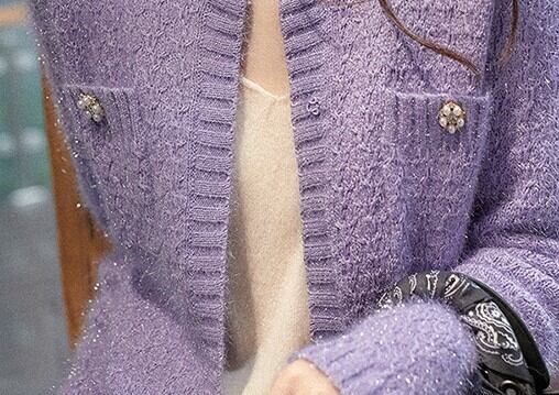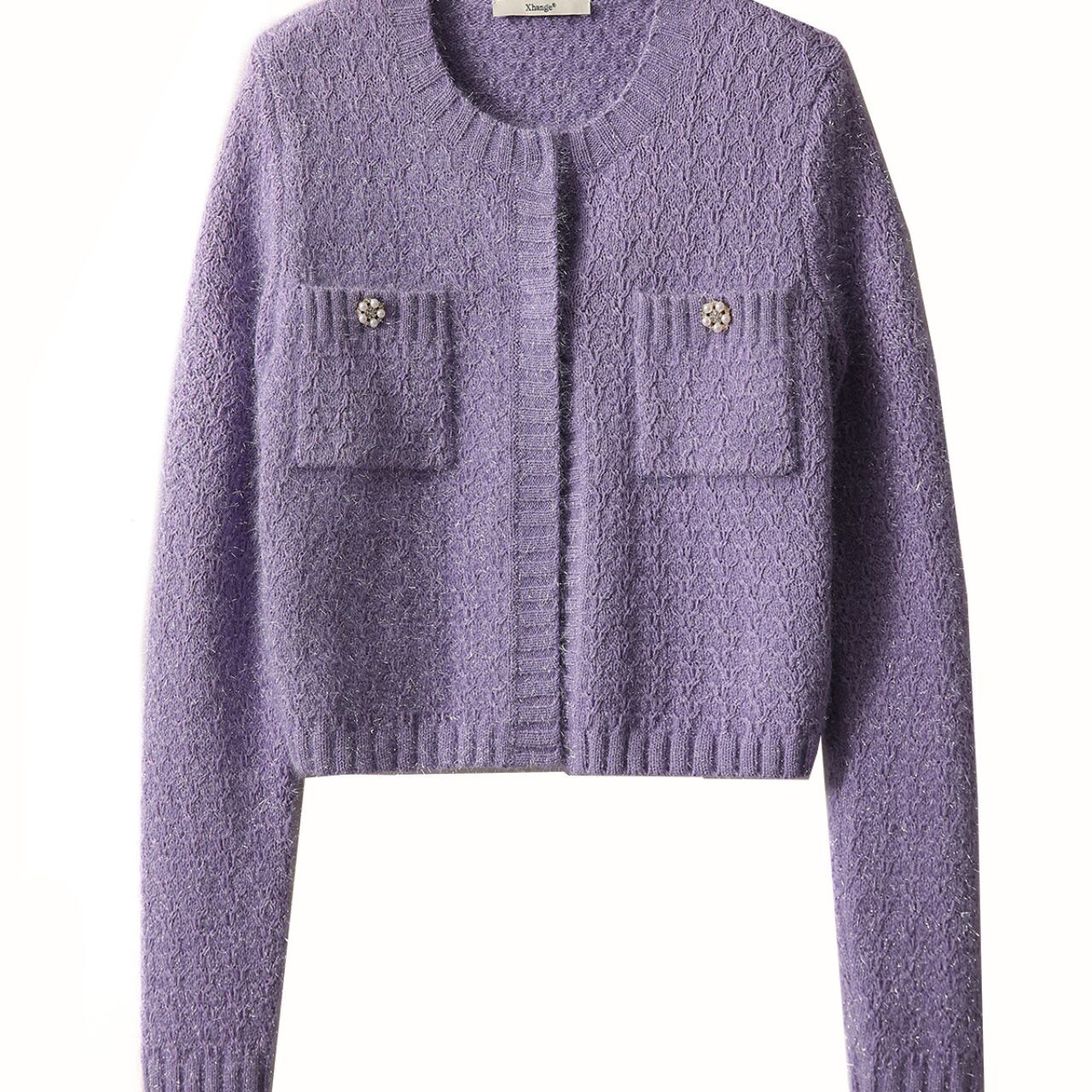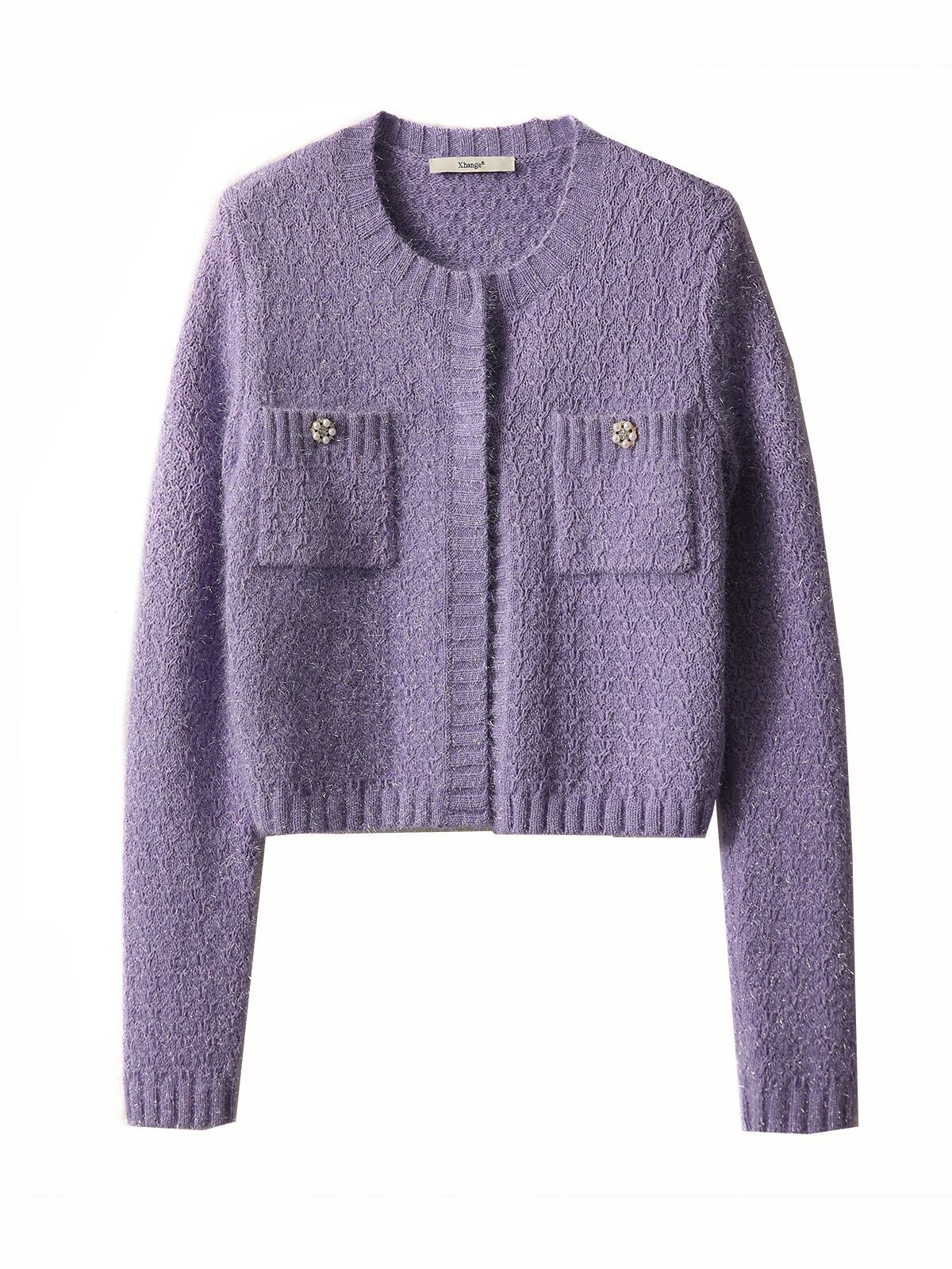 一枚で華やぎを添えるデザインのチェストパールエレガントショートニットカーディガン。